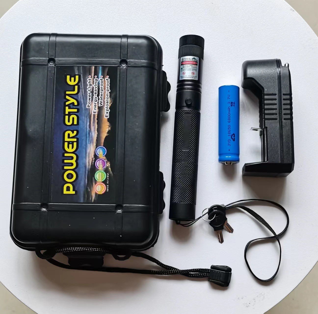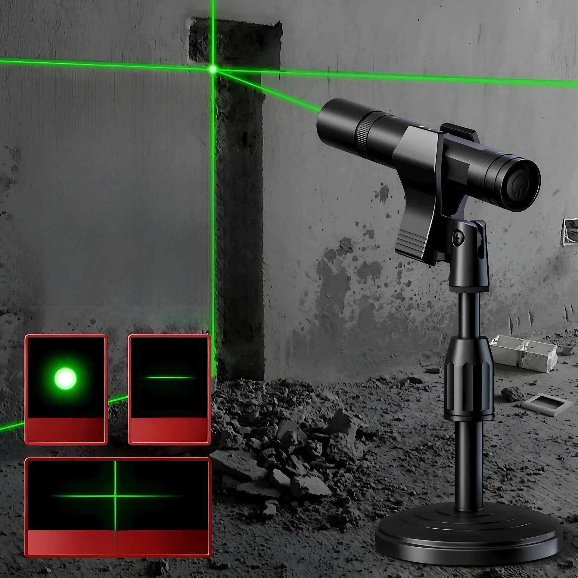 • 업그레이드된 3가지 모드 녹색 레이저 포인터 (점 + 직선 + 십자선) + 거치대 (고급 케이스 세트)