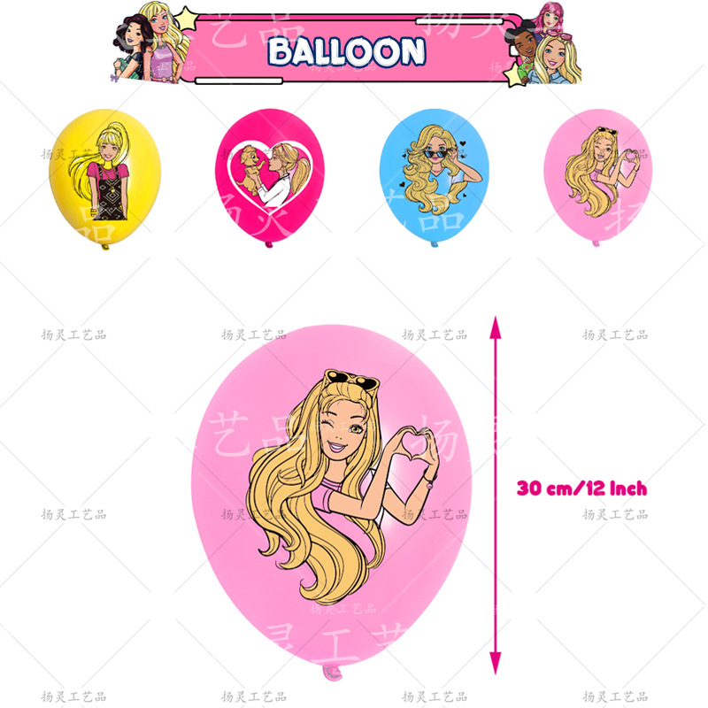 1包16个芭比气球(4黄,4玫红,4浅蓝,4粉)
