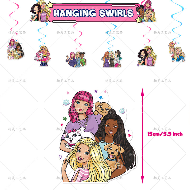 1套芭比螺旋套装(6个吊卡+6个单螺旋:3粉,3浅蓝)