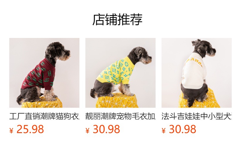 거꾸로 된 삼각형 1 대 1 같은 패션 브랜드 개 스웨터 요크 여름 중소 개 가을과 겨울 애완 동물 의류 코트스토어 가기
