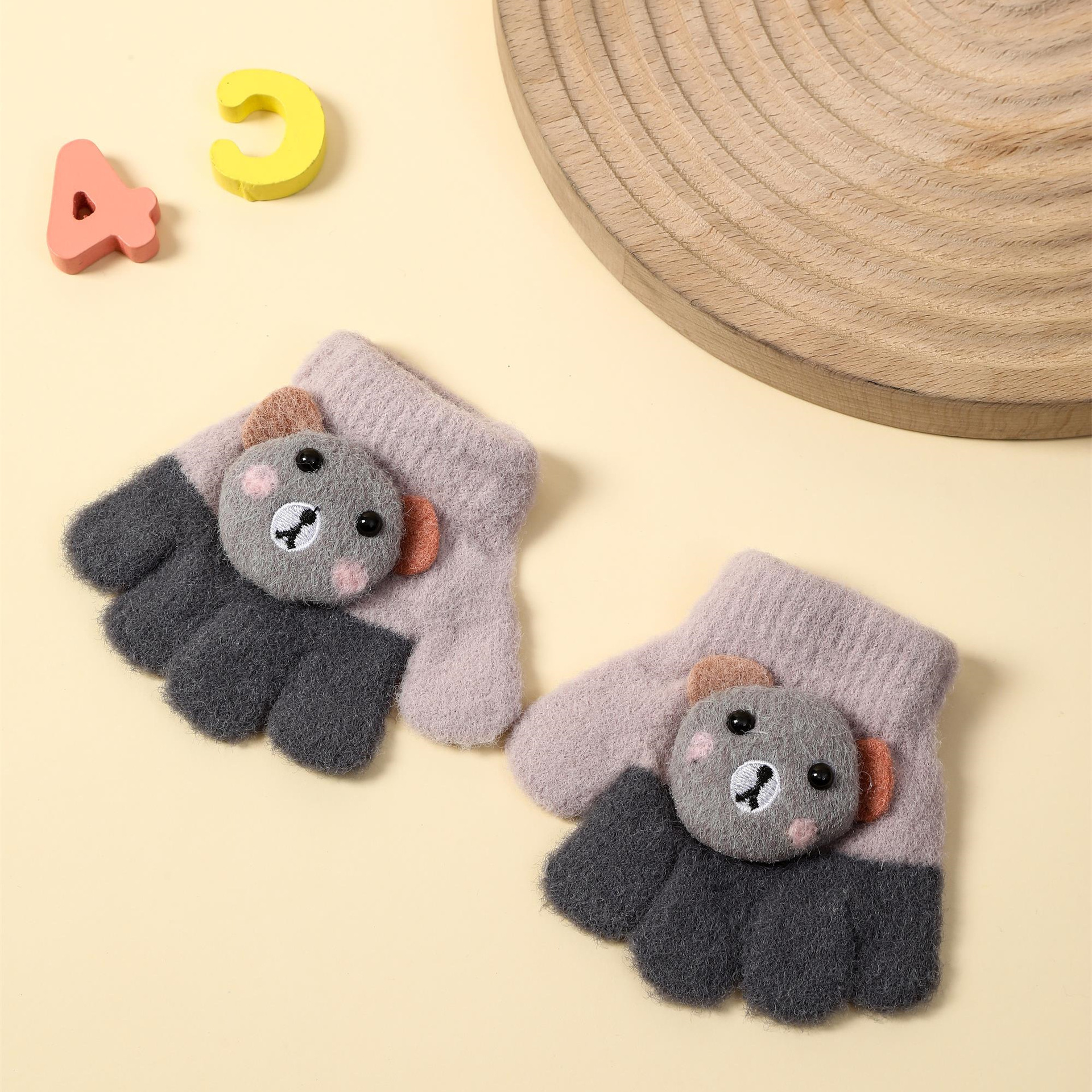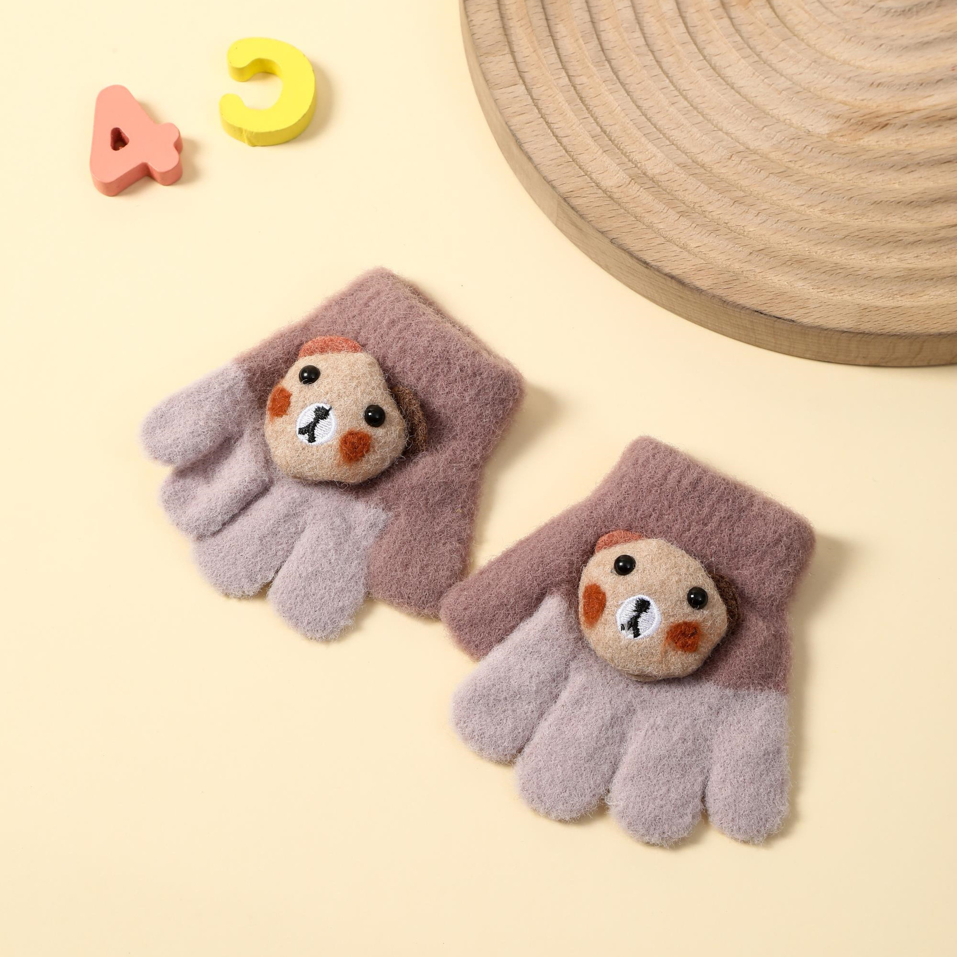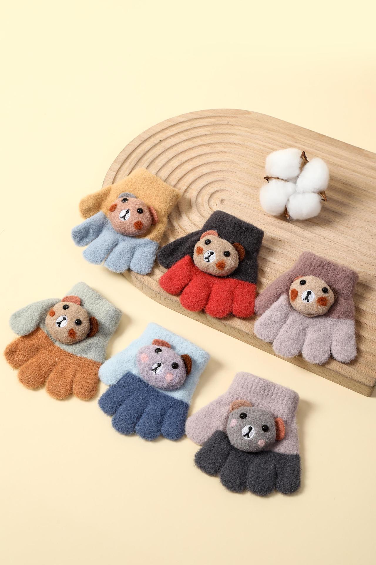 가을과 겨울 곰 아기 어린이 장갑 한국어 크롤링 차가운 따뜻한 다섯 손가락 귀여운 니트 장갑 머리카락 세대