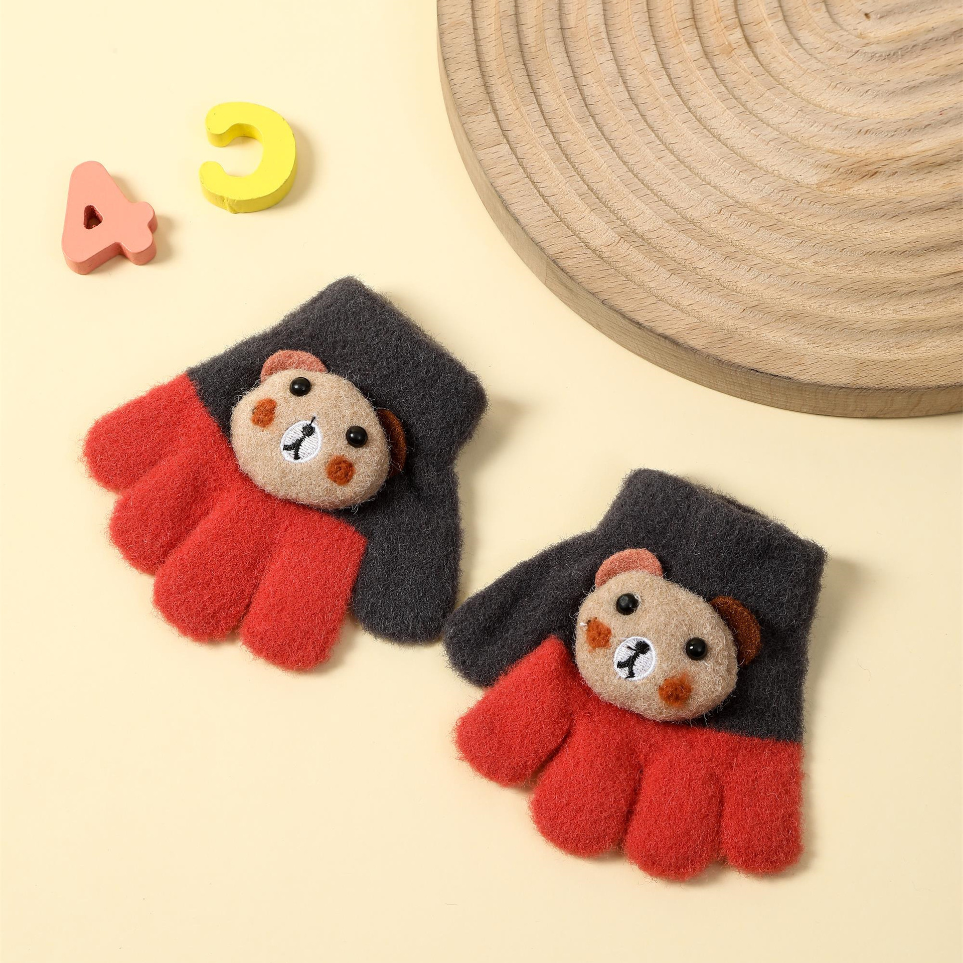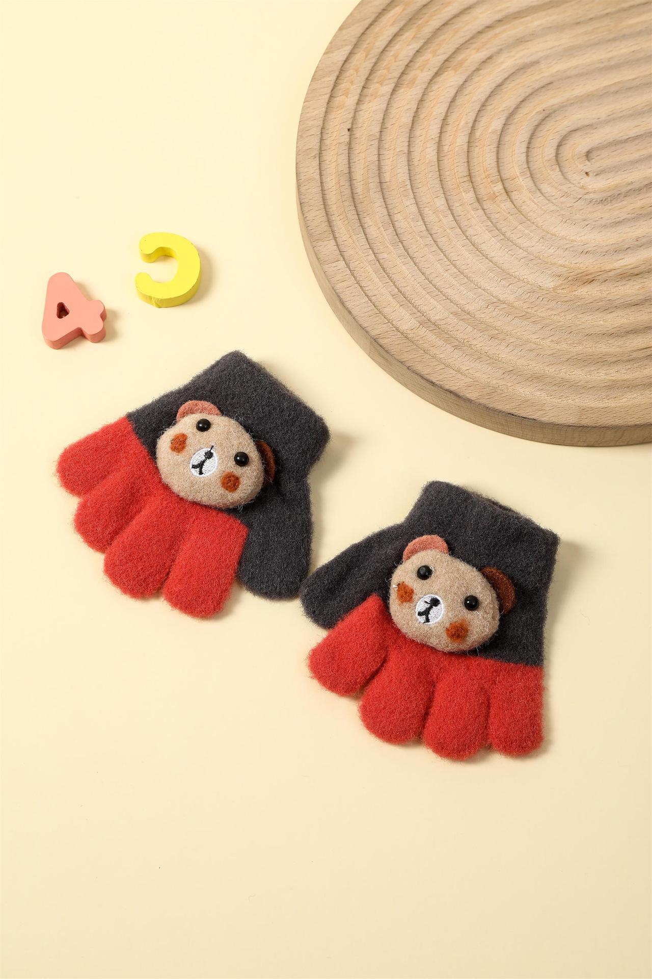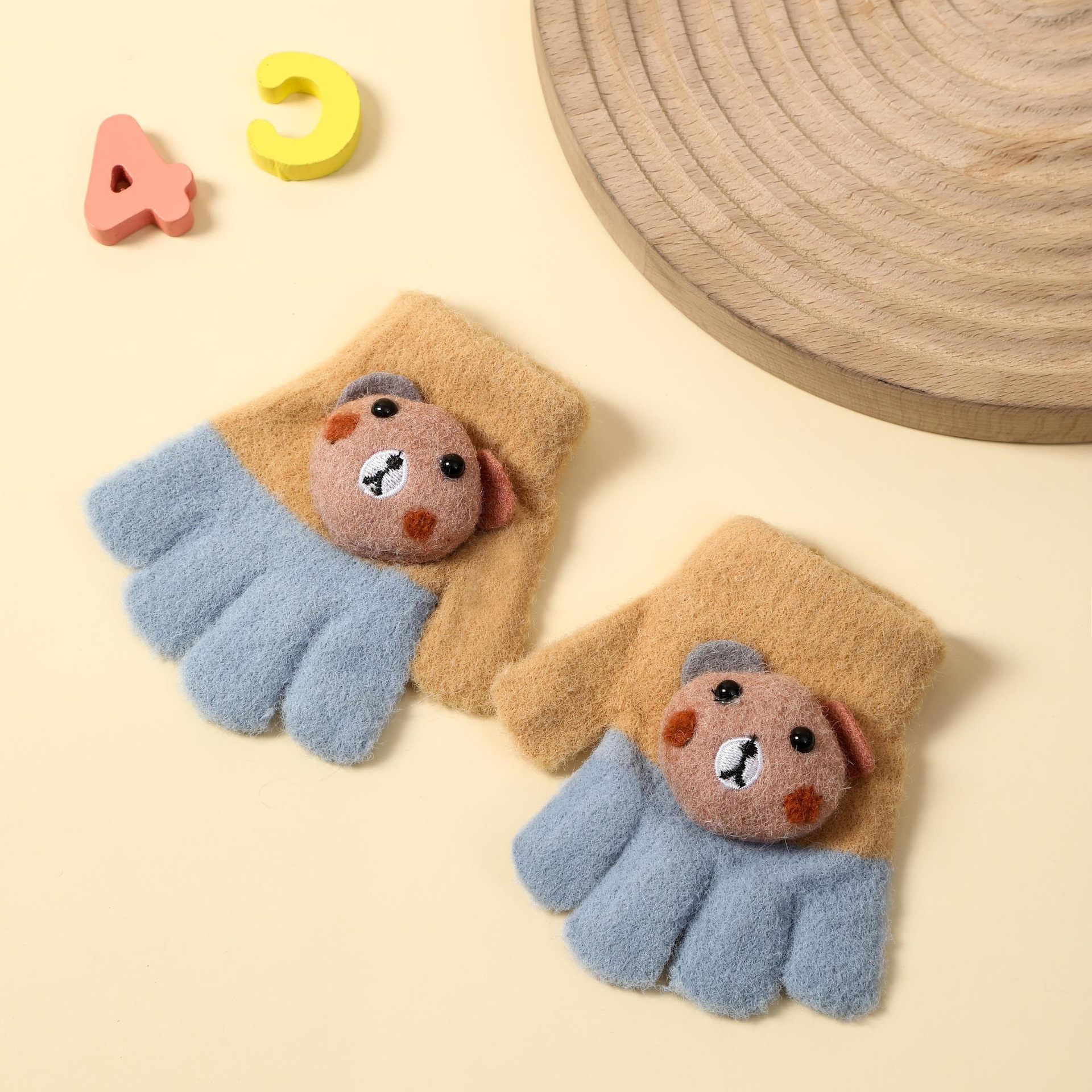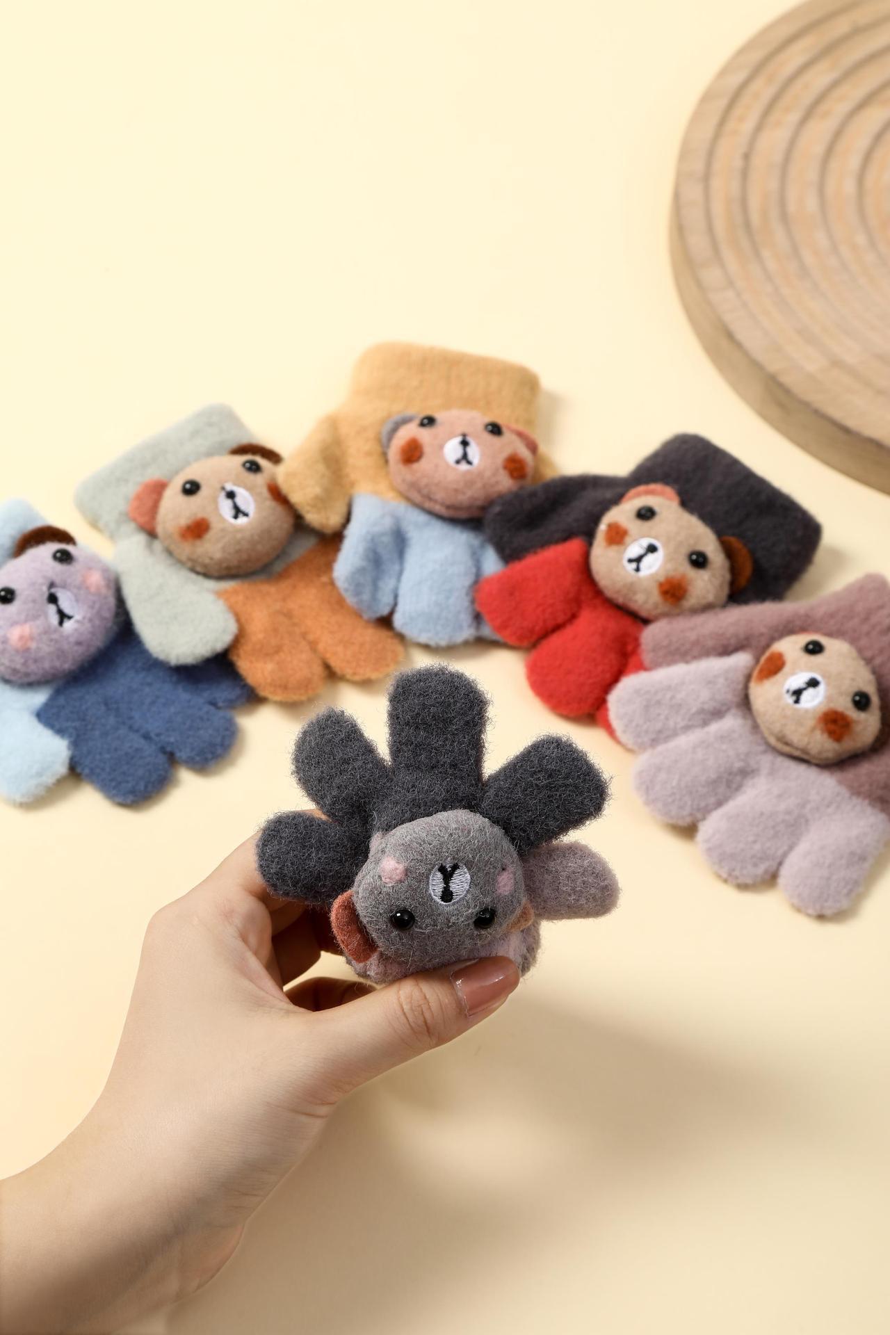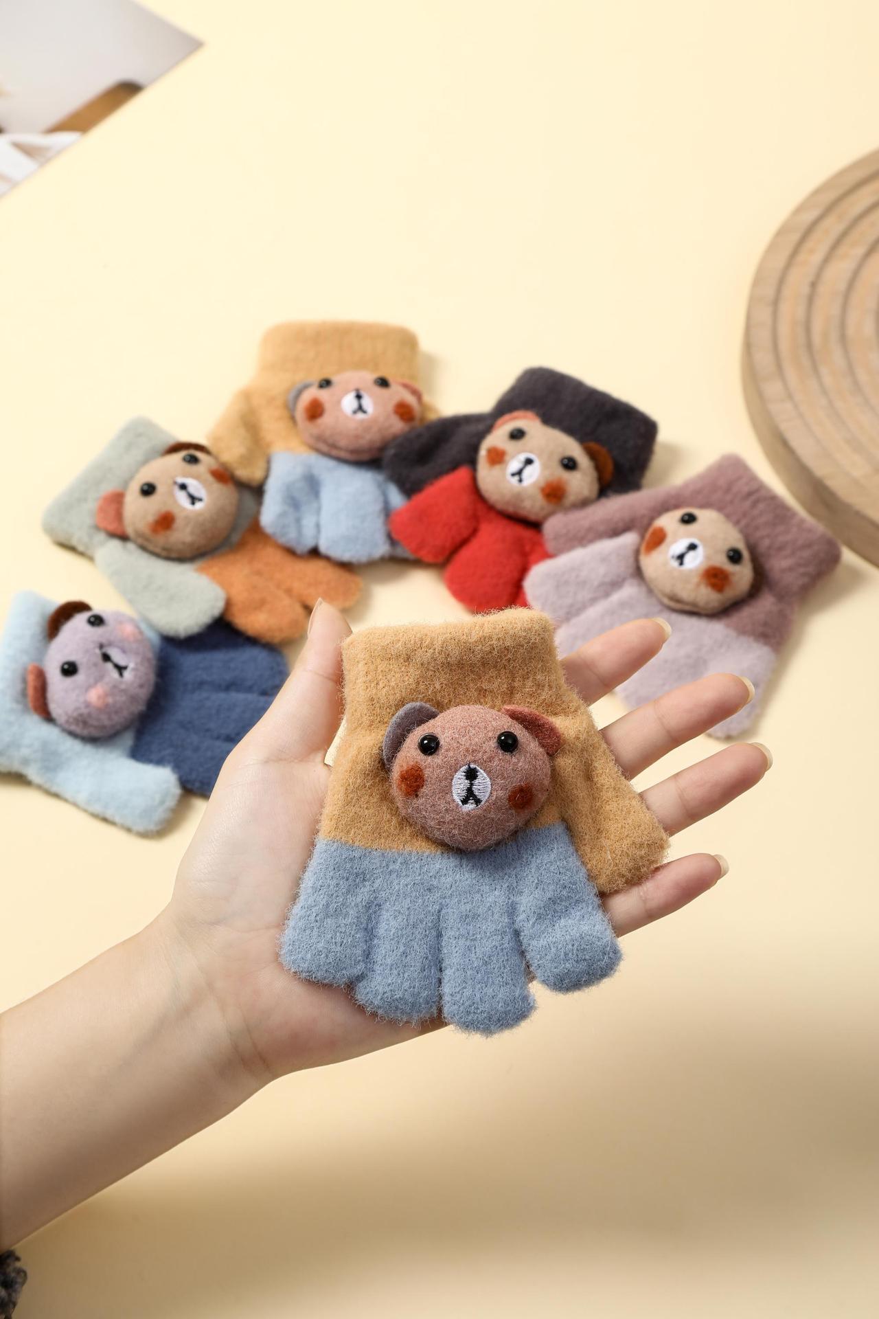 가을과 겨울 곰 아기 어린이 장갑 한국어 크롤링 차가운 따뜻한 다섯 손가락 귀여운 니트 장갑 머리카락 세대스토어 가기