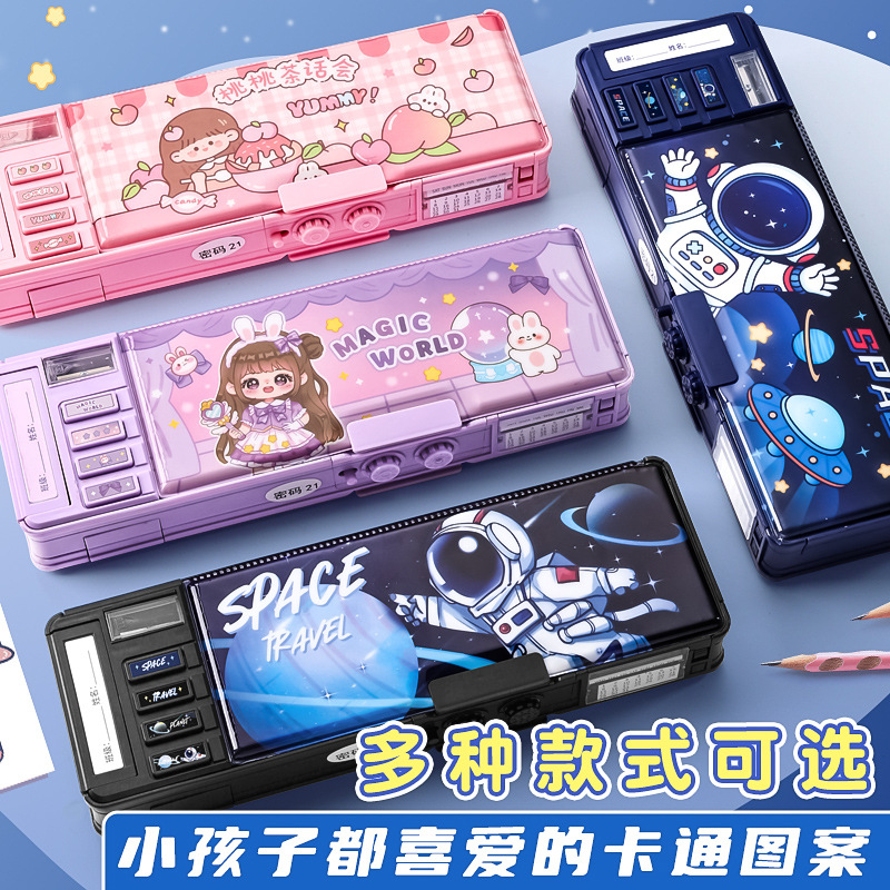 소년 다기능 문구 상자 소녀 암호 잠금 펜 상자 초등학교 어린이 소년 더블 레이어 대용량 필통스토어 가기