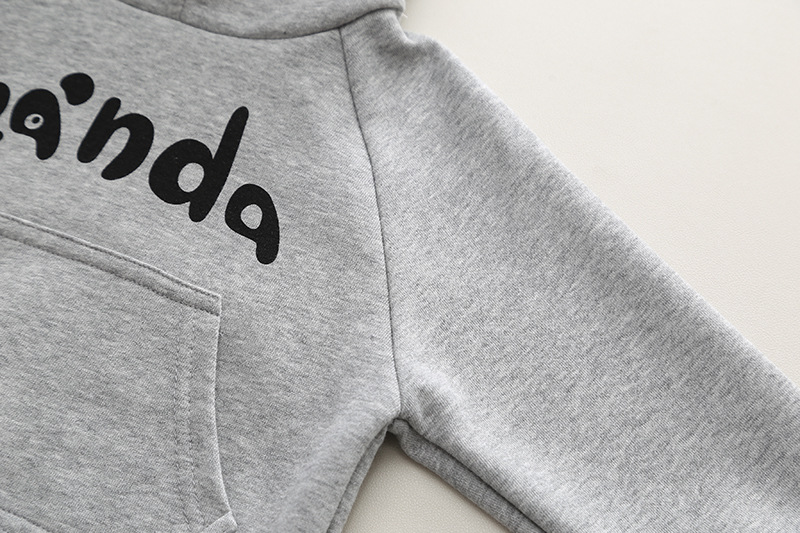 20223 가을 아동복 소년 영어 후드 만화 팬더 가방 어린이 운동복 귀여운 0-5 세 투피스 세트스토어 가기