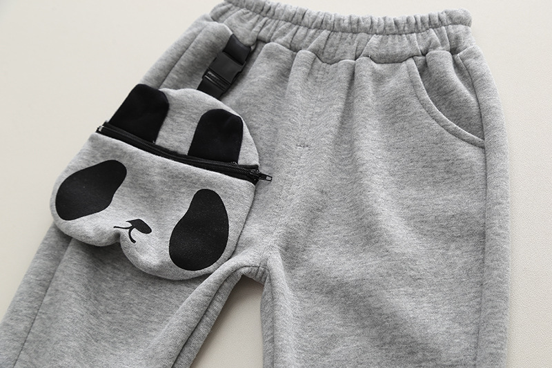 20223 가을 아동복 소년 영어 후드 만화 팬더 가방 어린이 운동복 귀여운 0-5 세 투피스 세트