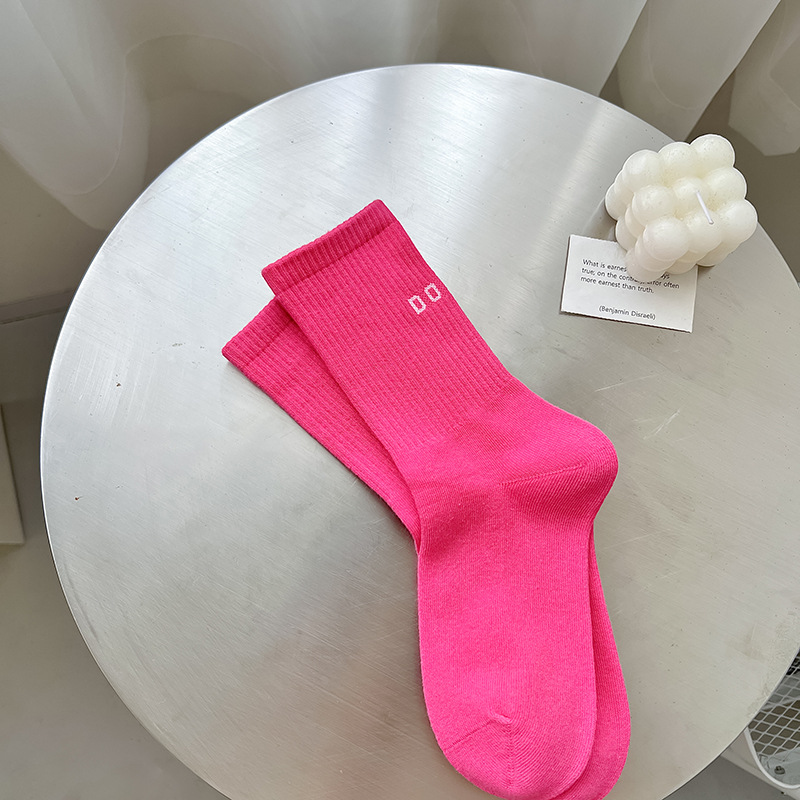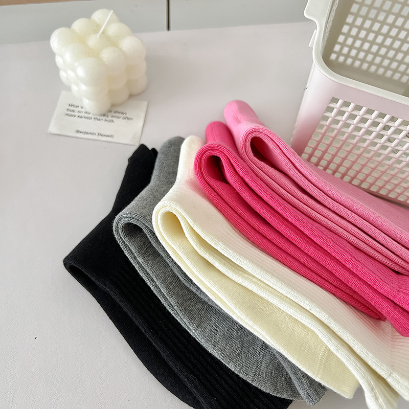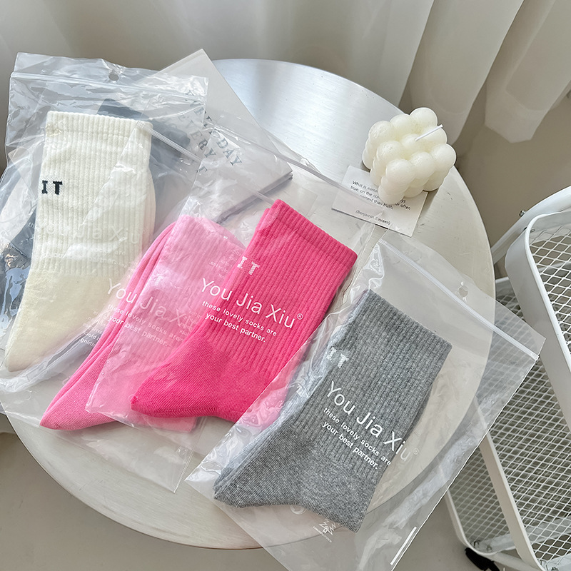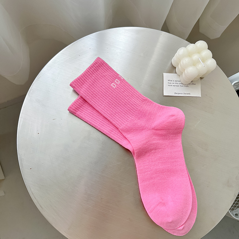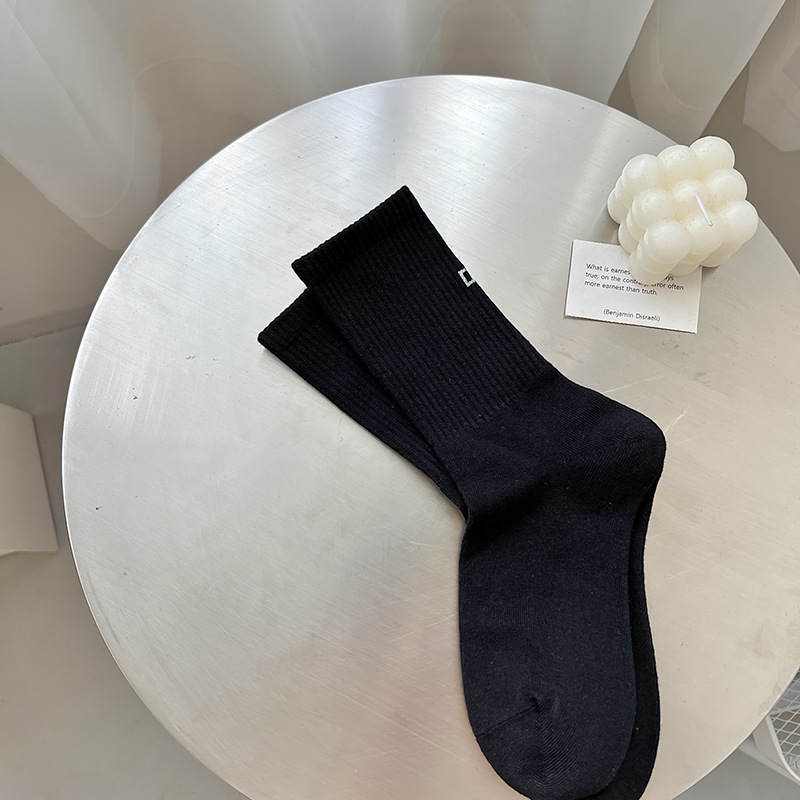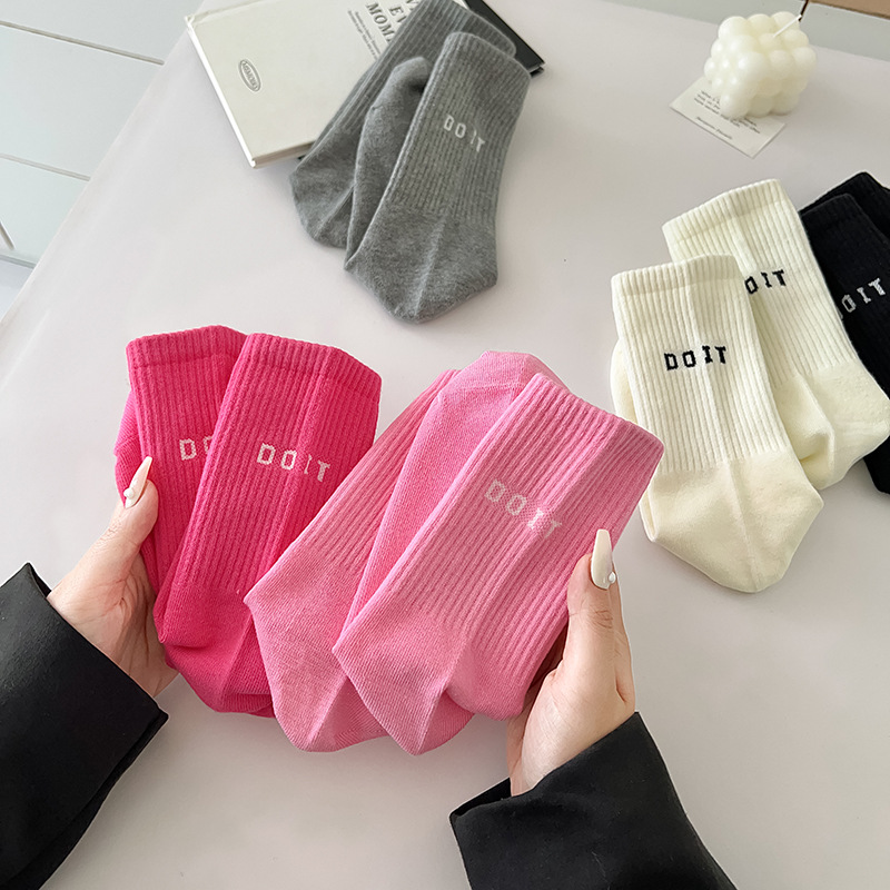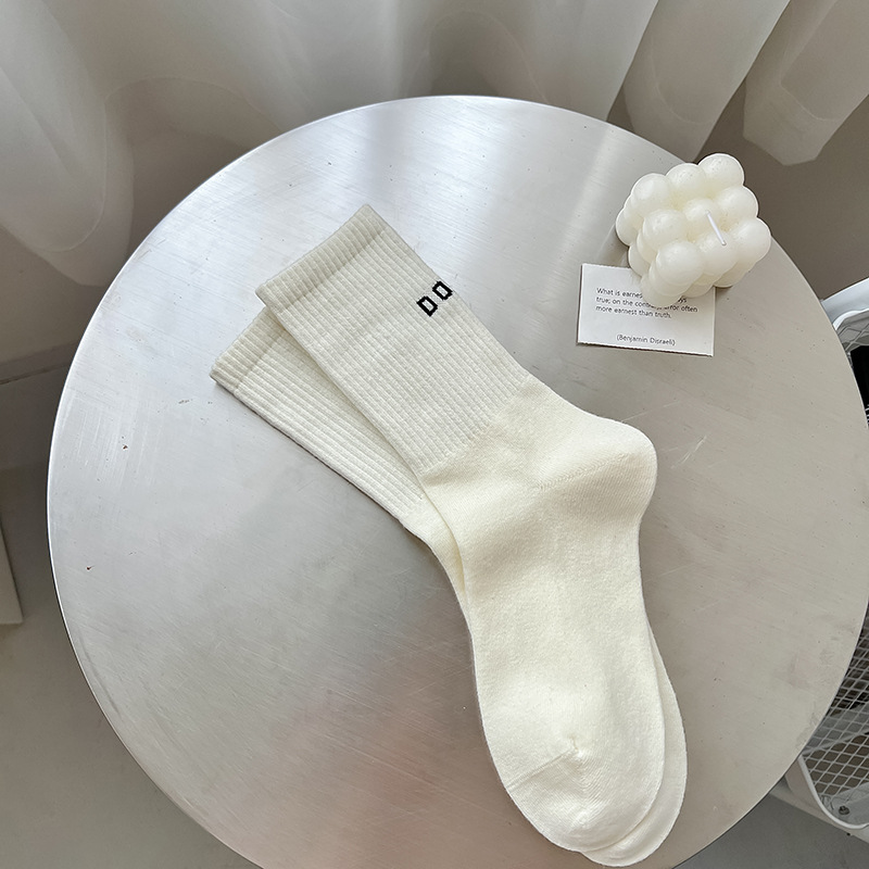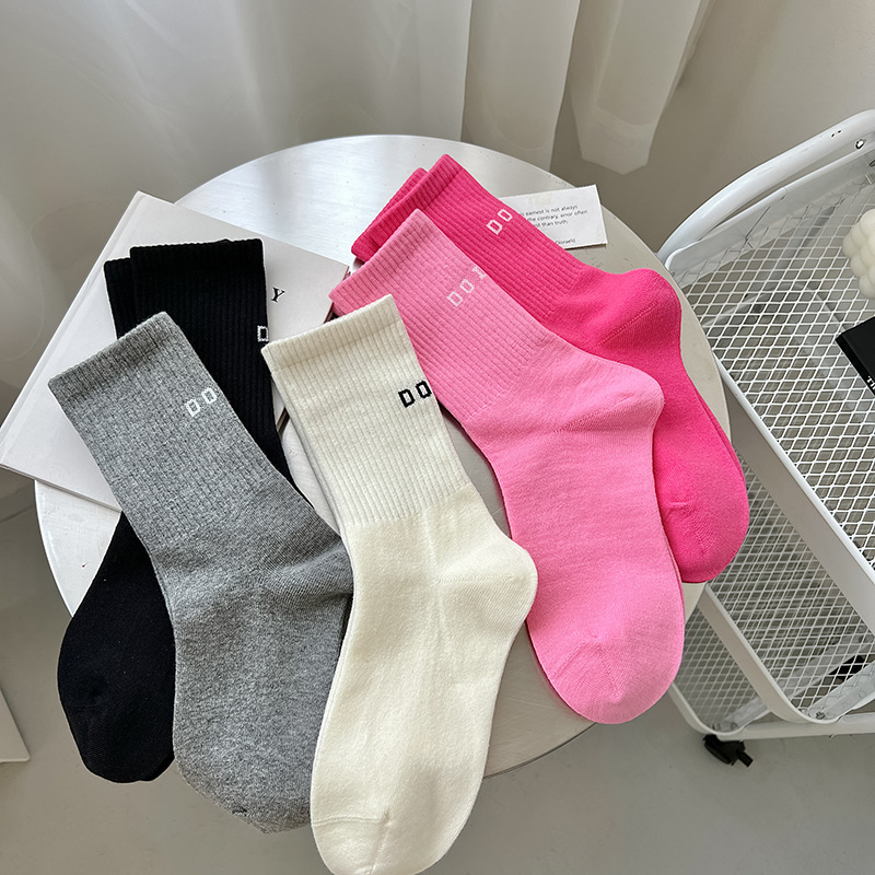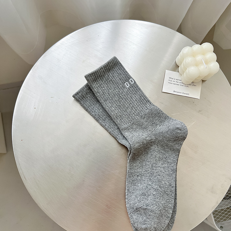 여성용 중목 양말, 가을 겨울용 일본 스타일, 한국 스타일 레터링 롱 양말, 스포츠 스타일 회색 색상, 샤크 팬츠와 함께 착용하는 면 양말스토어 가기