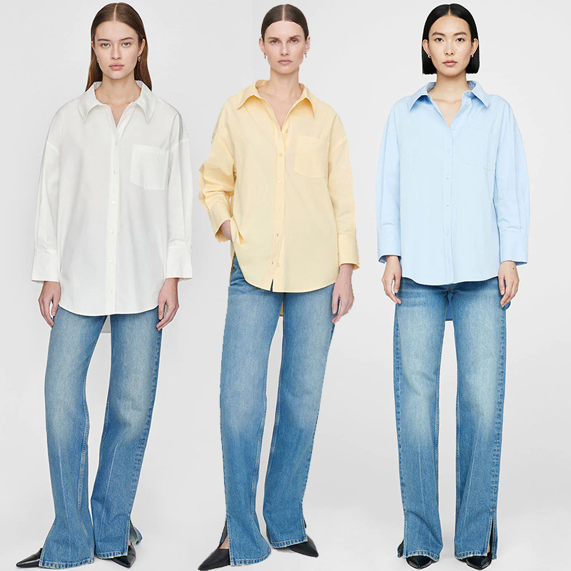 23早秋新款北美小众AB经典款宽松logo刺绣翻领下摆弧形女衬衫衬衣