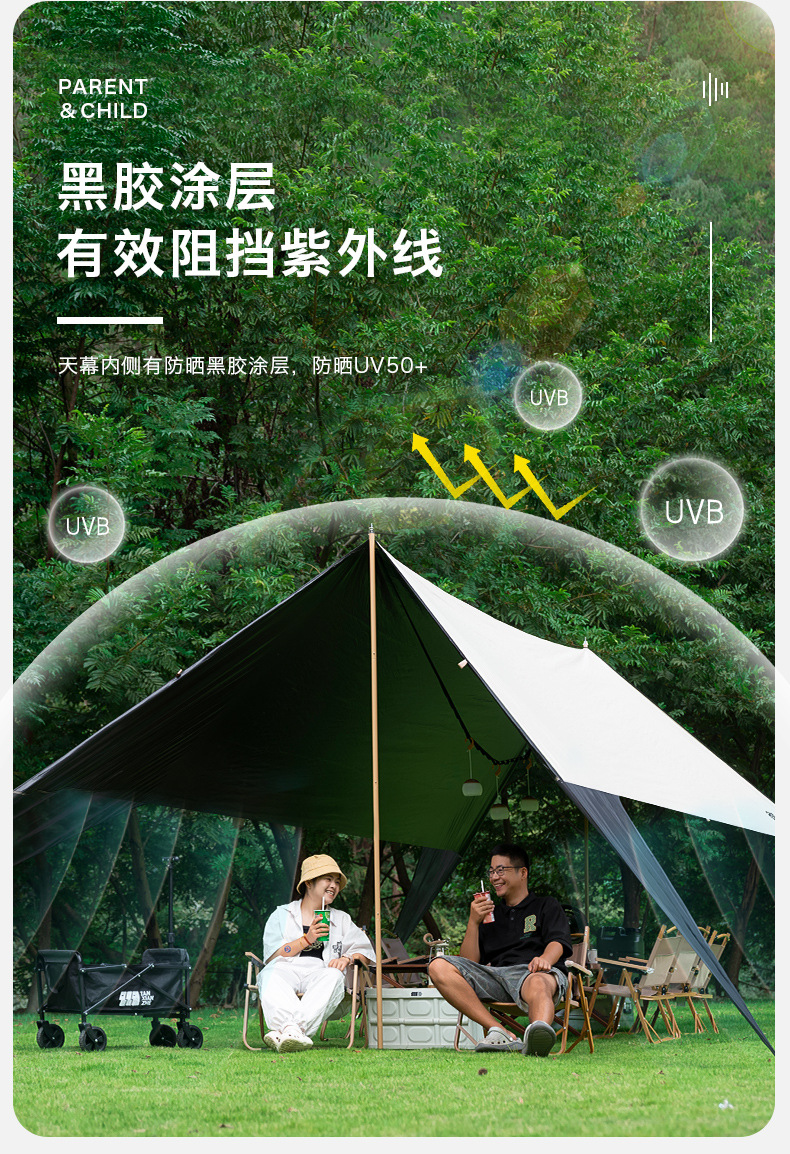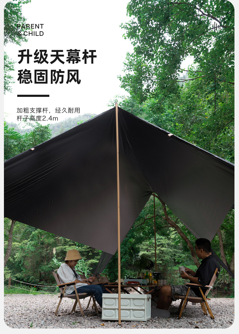 익스플로러 블랙 접착제 캐노피 텐트 야외 태양 보호 캠핑 캐노피 천 휴대용 방수 코팅 피크닉 천막