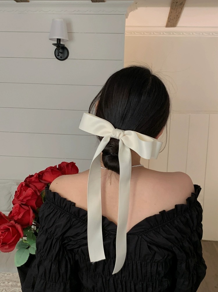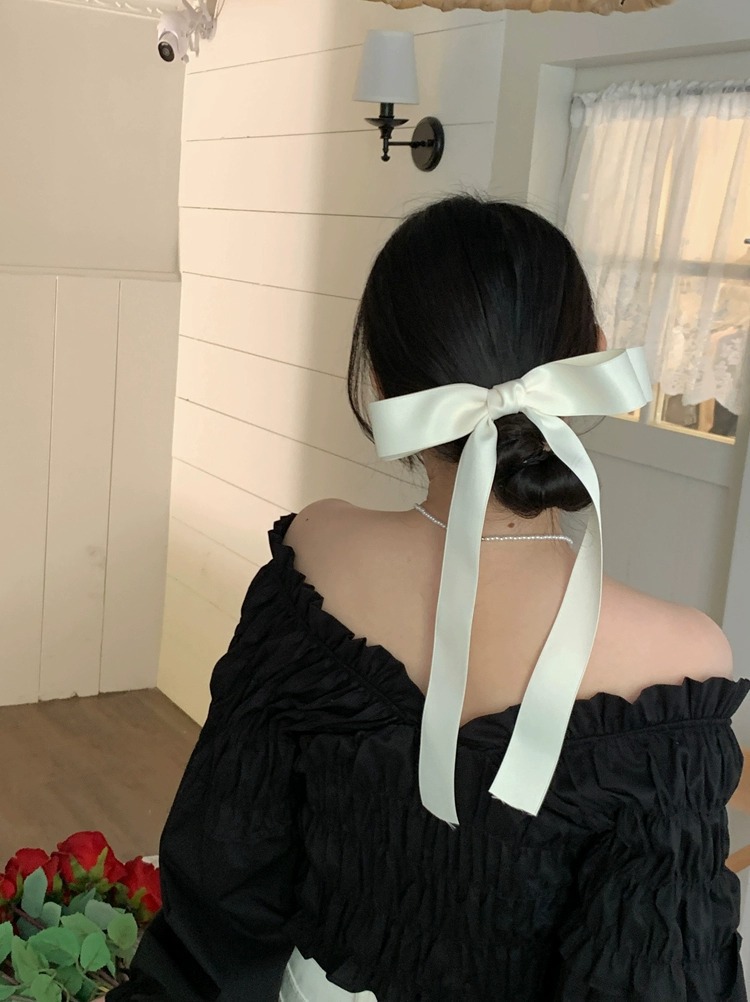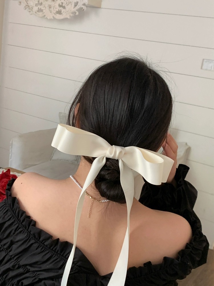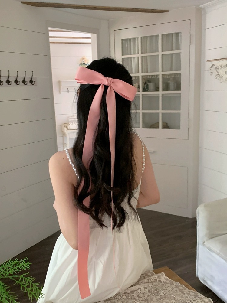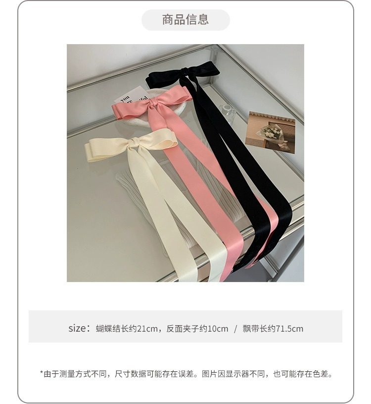 제니의 슈퍼 롱 보우 리본 머리핀 탑 클립 소녀의 머리핀 머리 머리 액세서리 뒷면