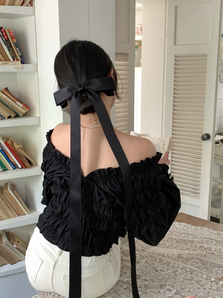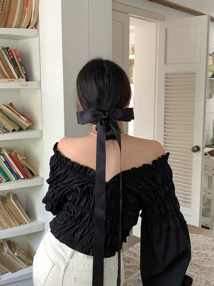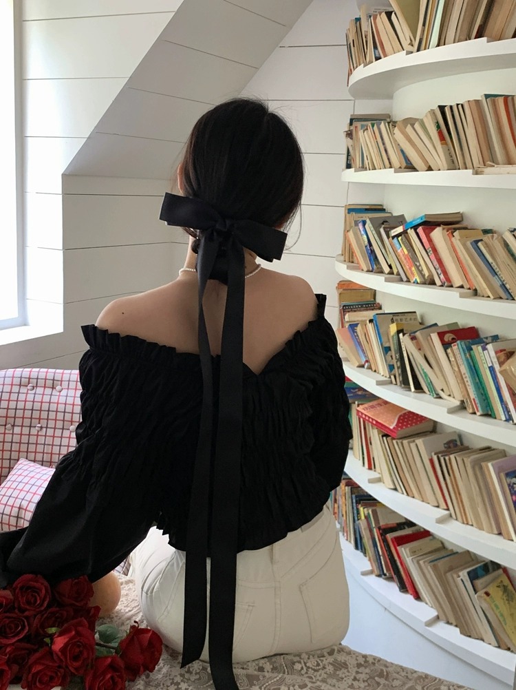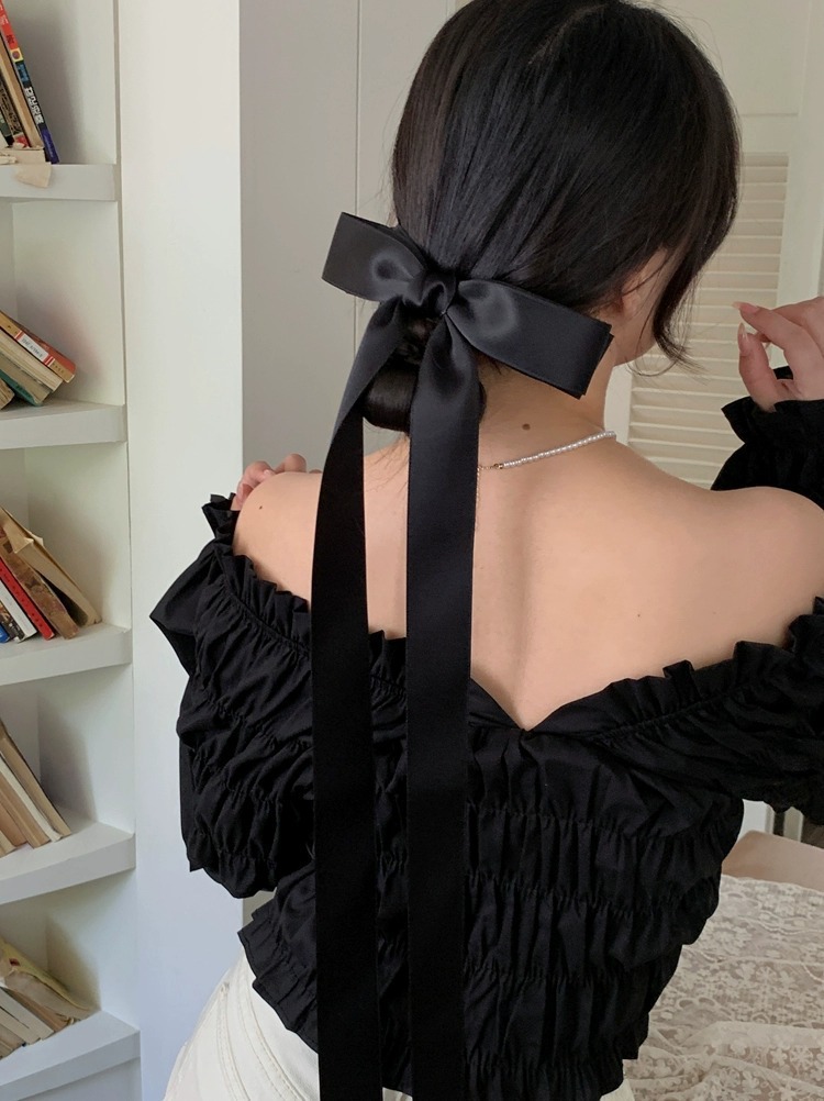 제니의 슈퍼 롱 보우 리본 머리핀 탑 클립 소녀의 머리핀 머리 머리 액세서리 뒷면