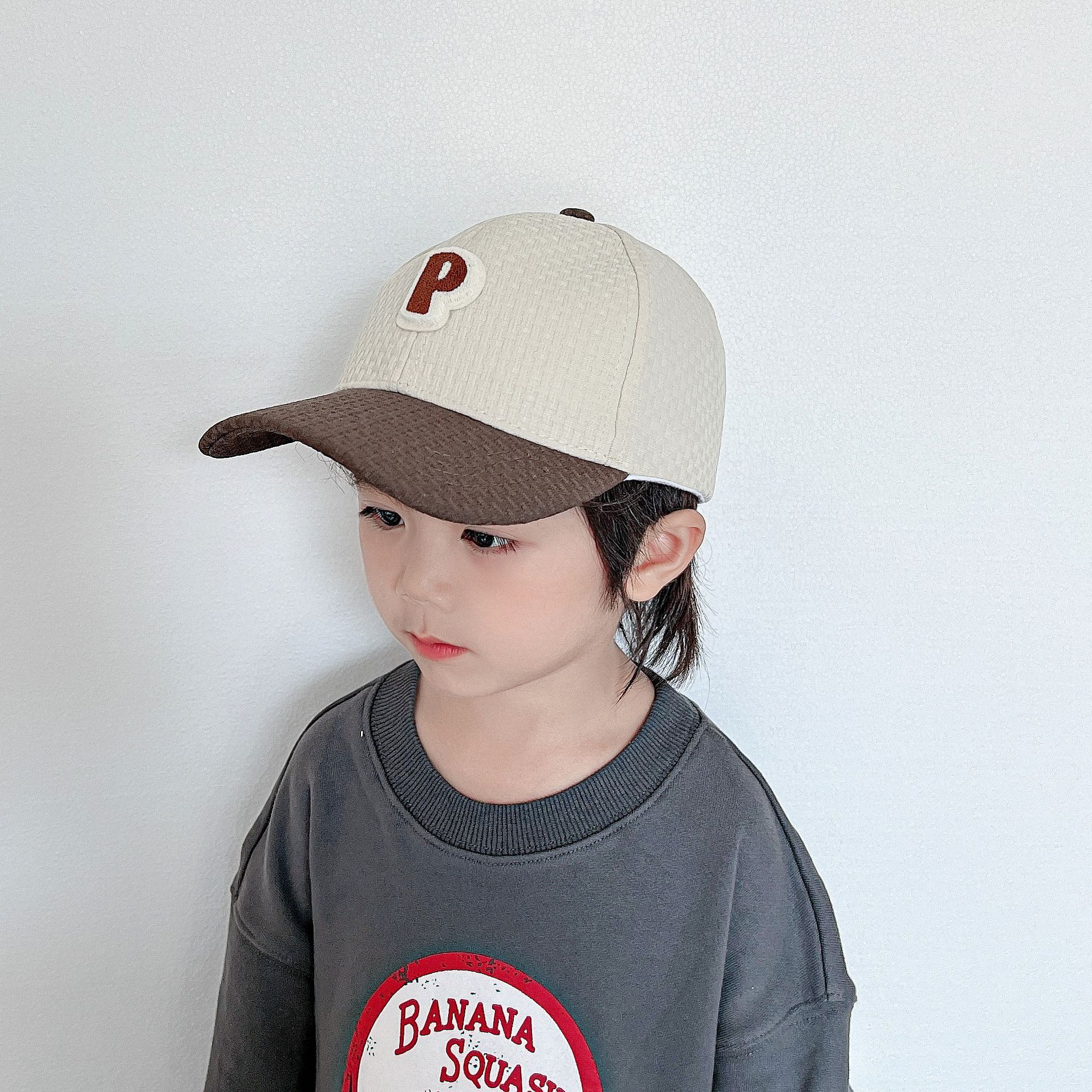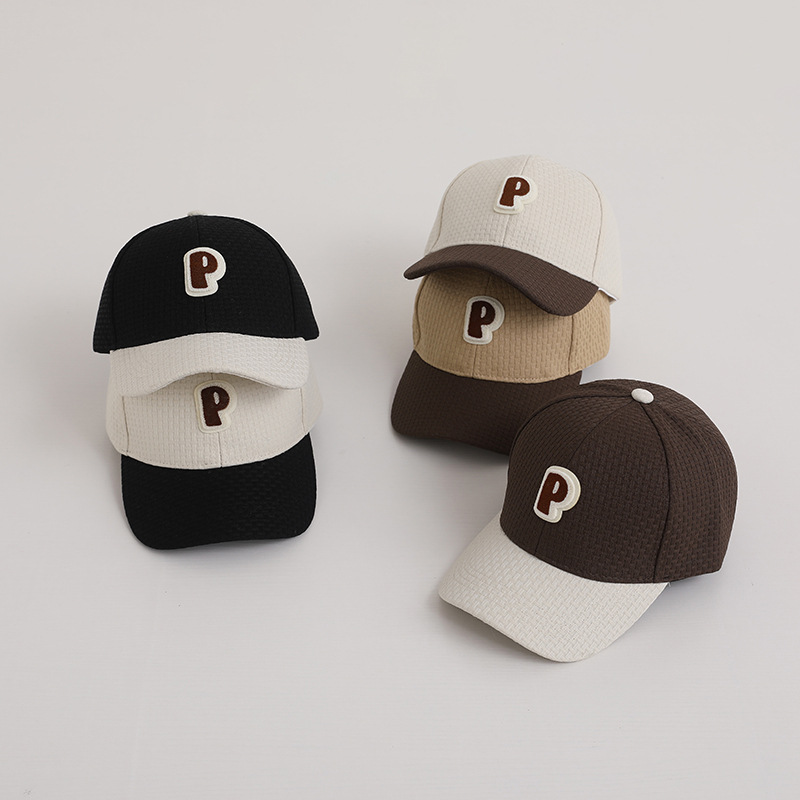 한국 같은 스타일의 어린이 야구 모자 편지 P 엠보싱 컬러 매칭 캡 4-8 세 소년 소녀 일반 모자스토어 가기