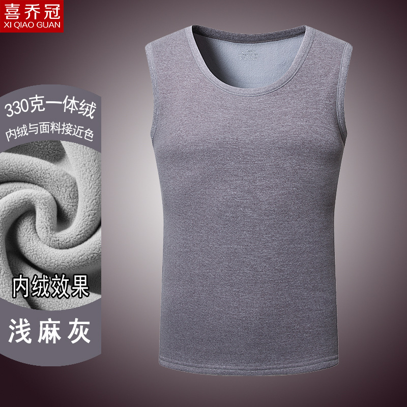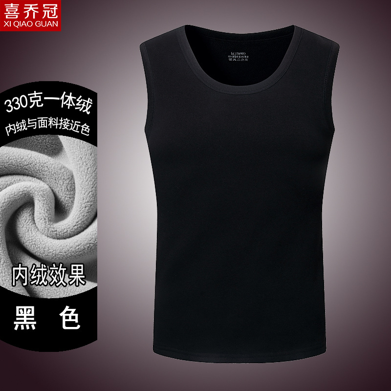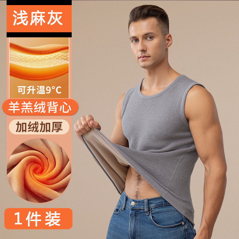 양고기 양털 남자의 열 조끼 가을과 겨울 단색 슬림 핏 기모 두꺼운 양면 원피스 양털 크루넥 베이스 속옷