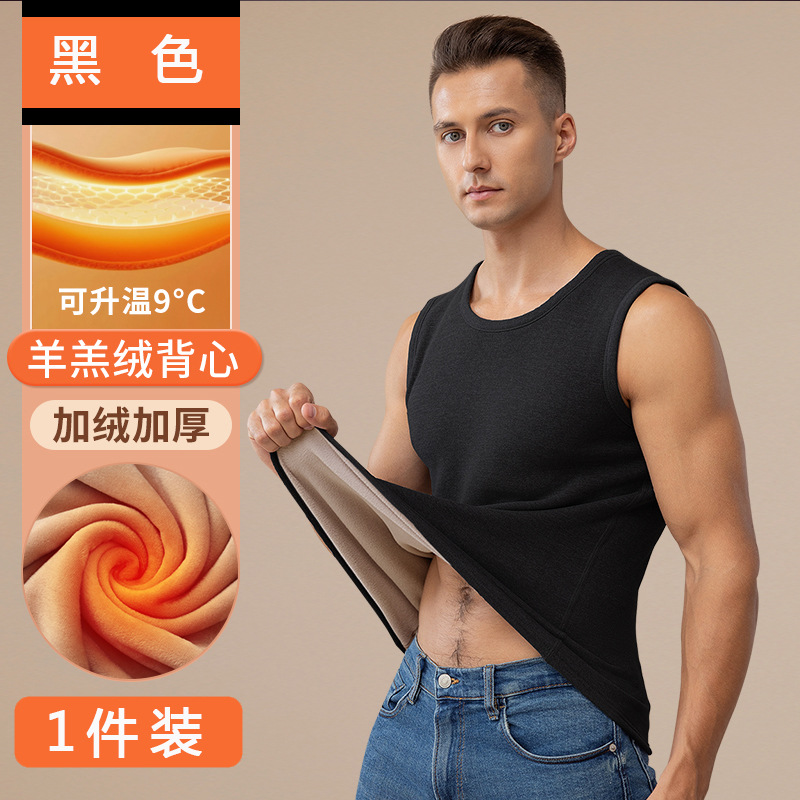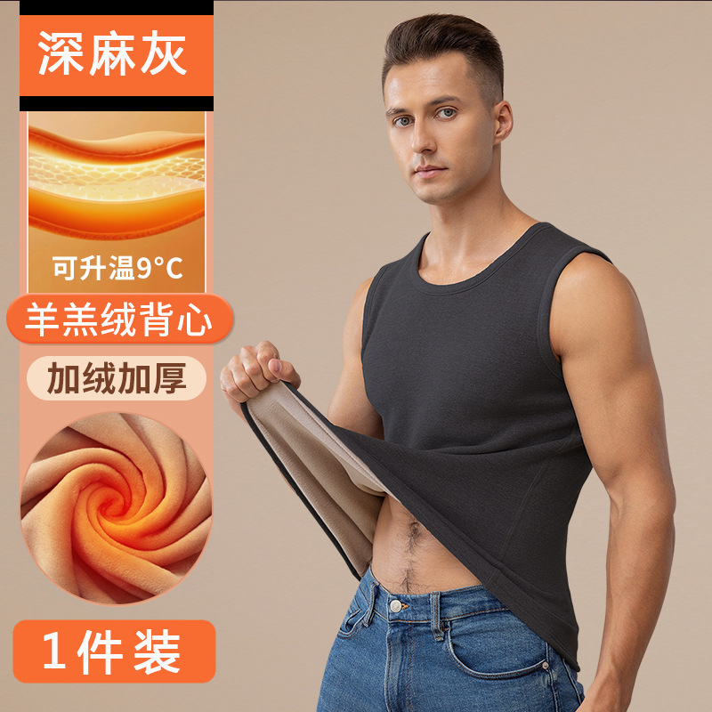 양고기 양털 남자의 열 조끼 가을과 겨울 단색 슬림 핏 기모 두꺼운 양면 원피스 양털 크루넥 베이스 속옷스토어 가기