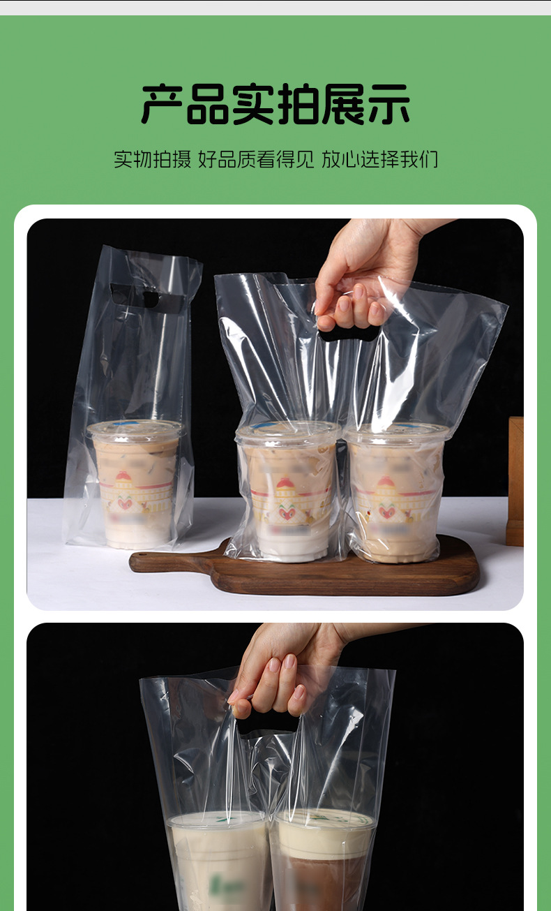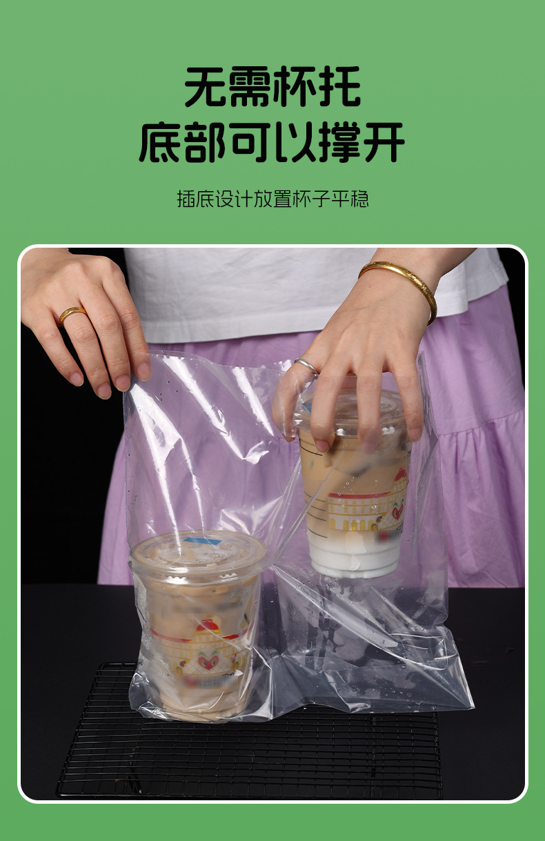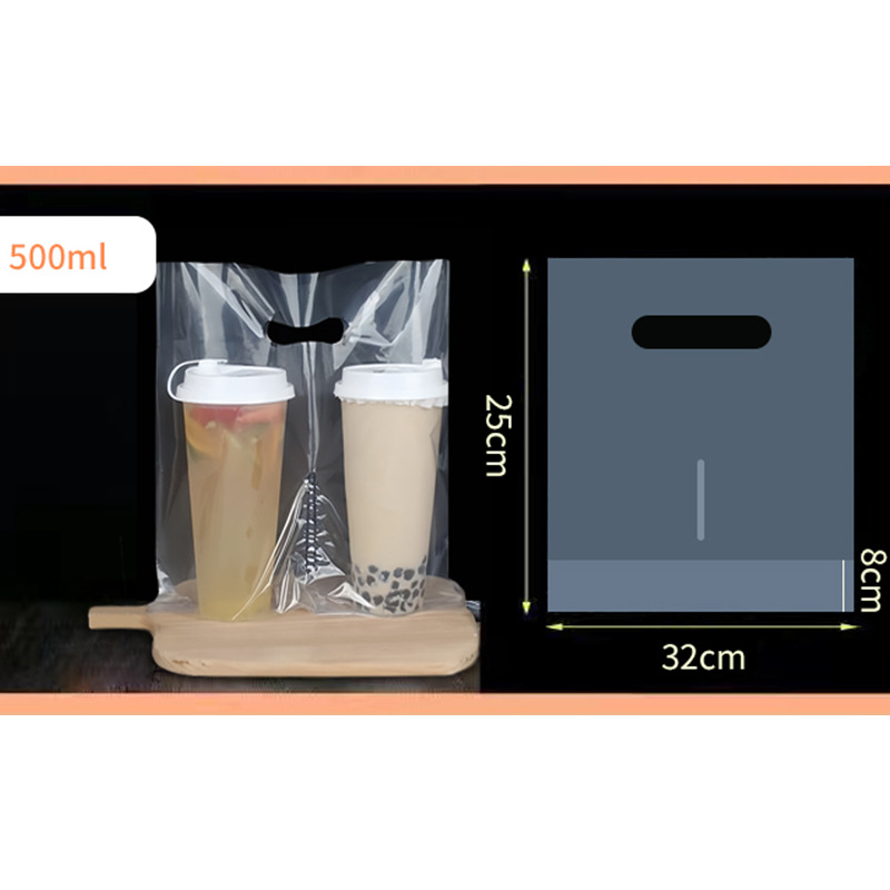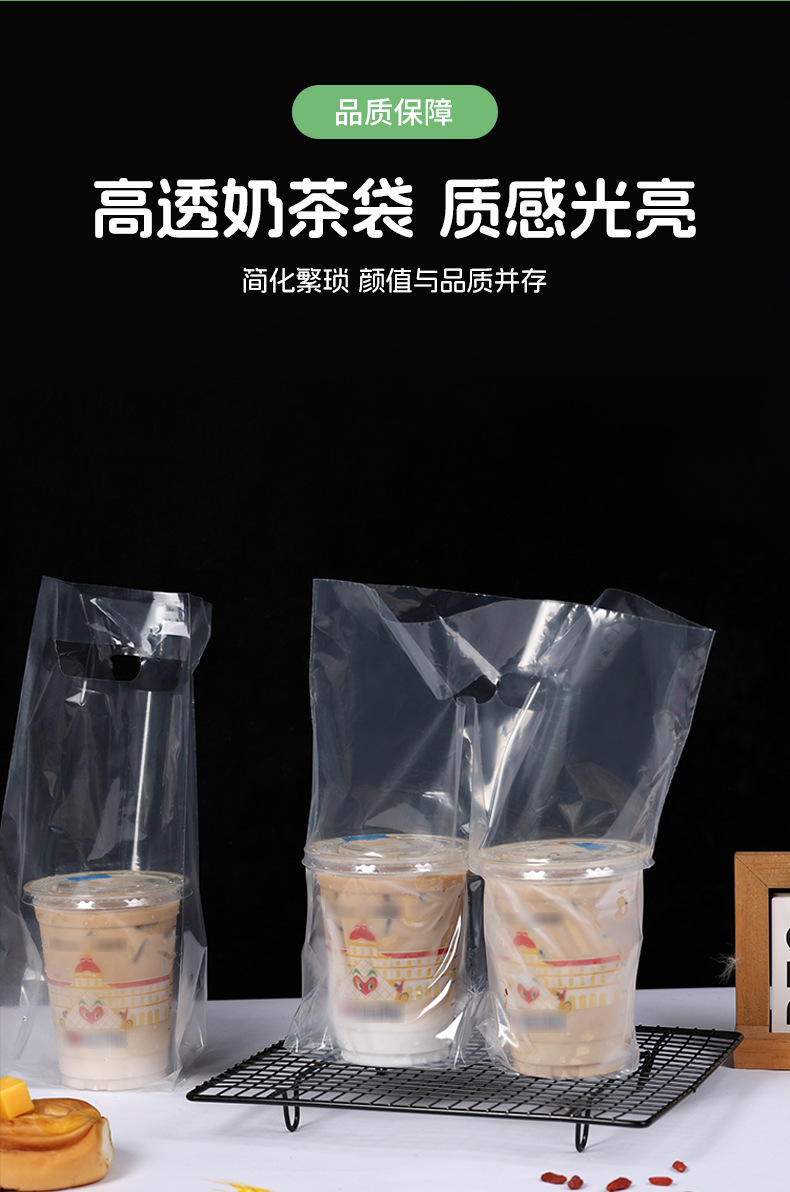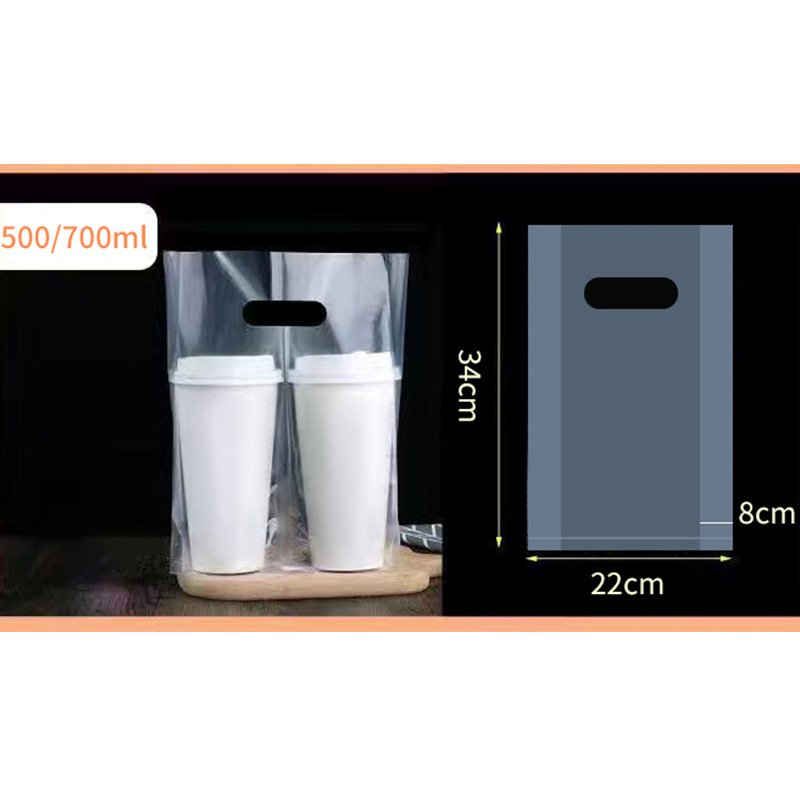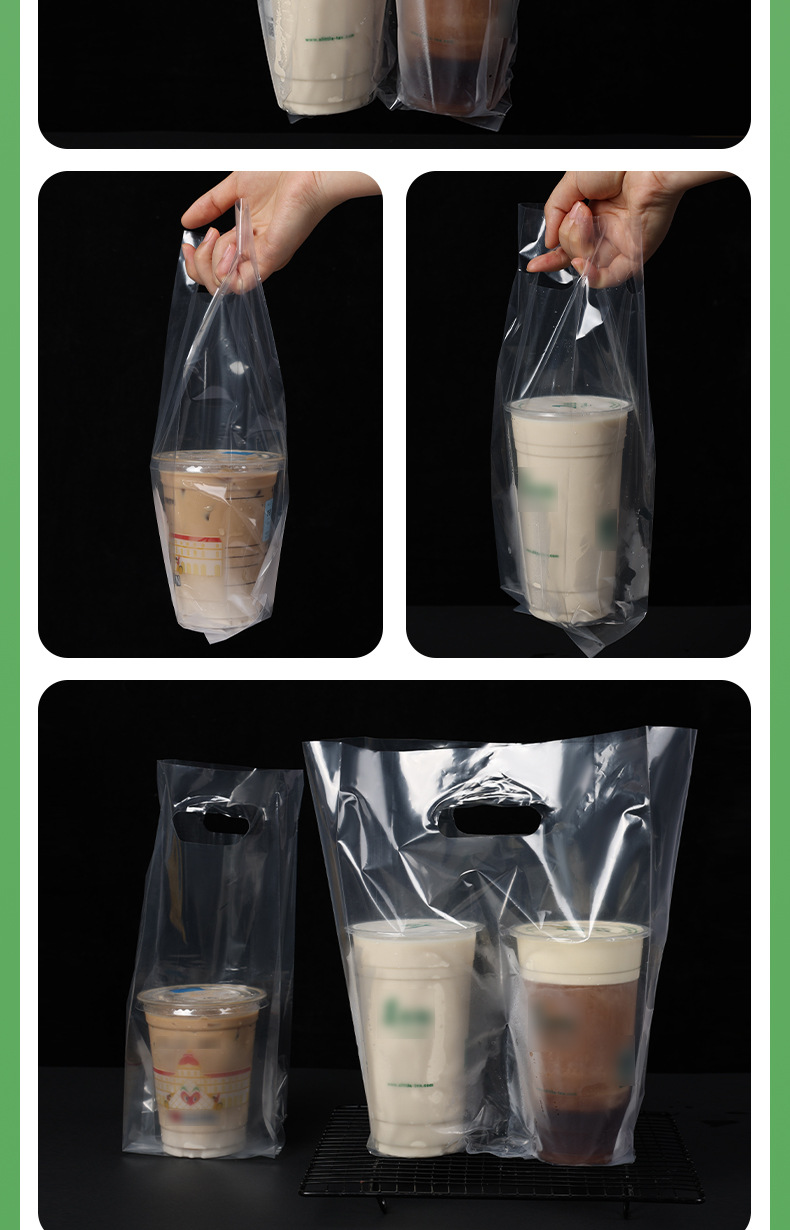 투명 우유 티백 일회용 포장 백 두꺼운 페 우유 티백 테이크 아웃 음료 커피 싱글 및 더블 컵 백