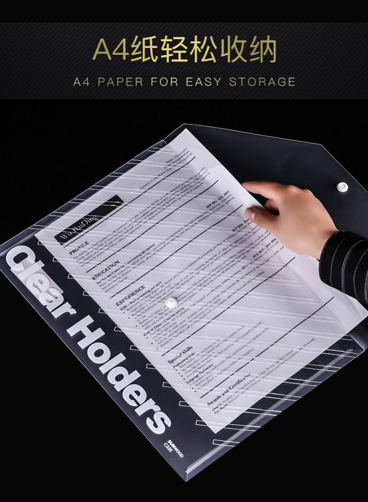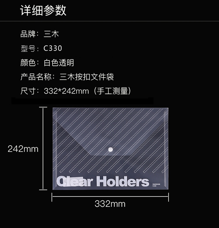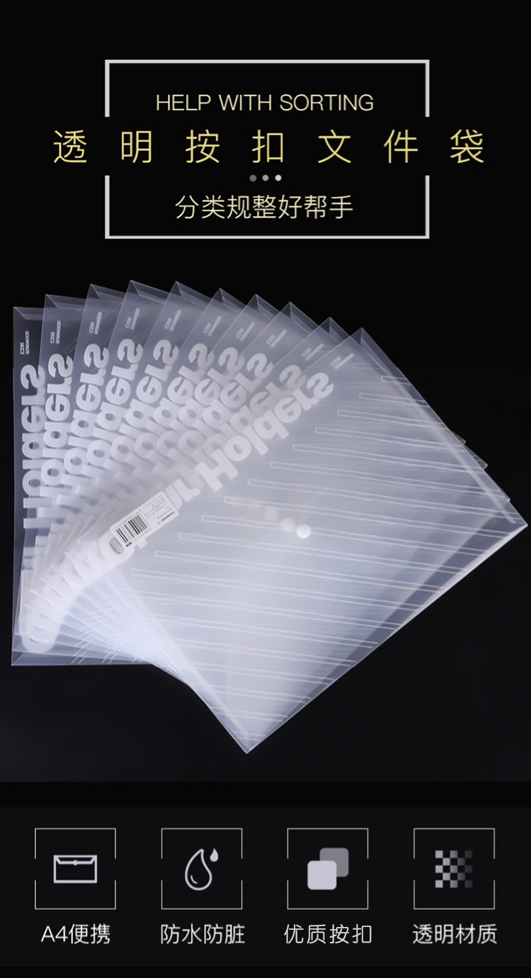 산무 C330 스냅 A4 문서 가방 서류 가방 투명 방수 정보 가방 투명 능직 가방 두꺼운 도매