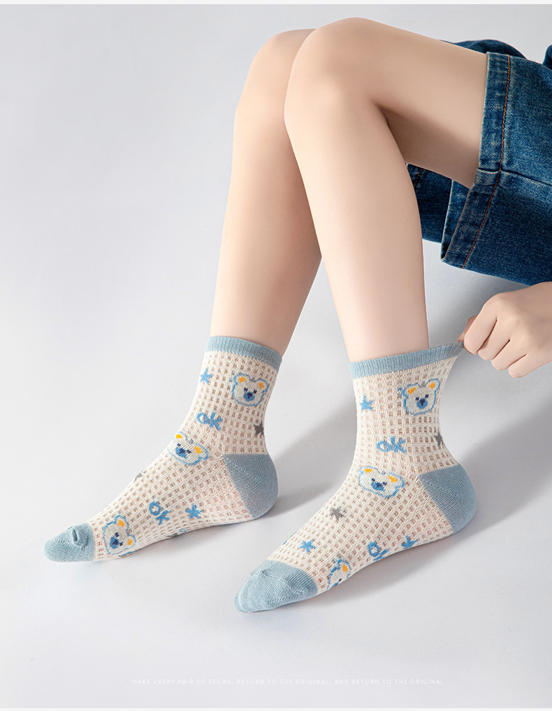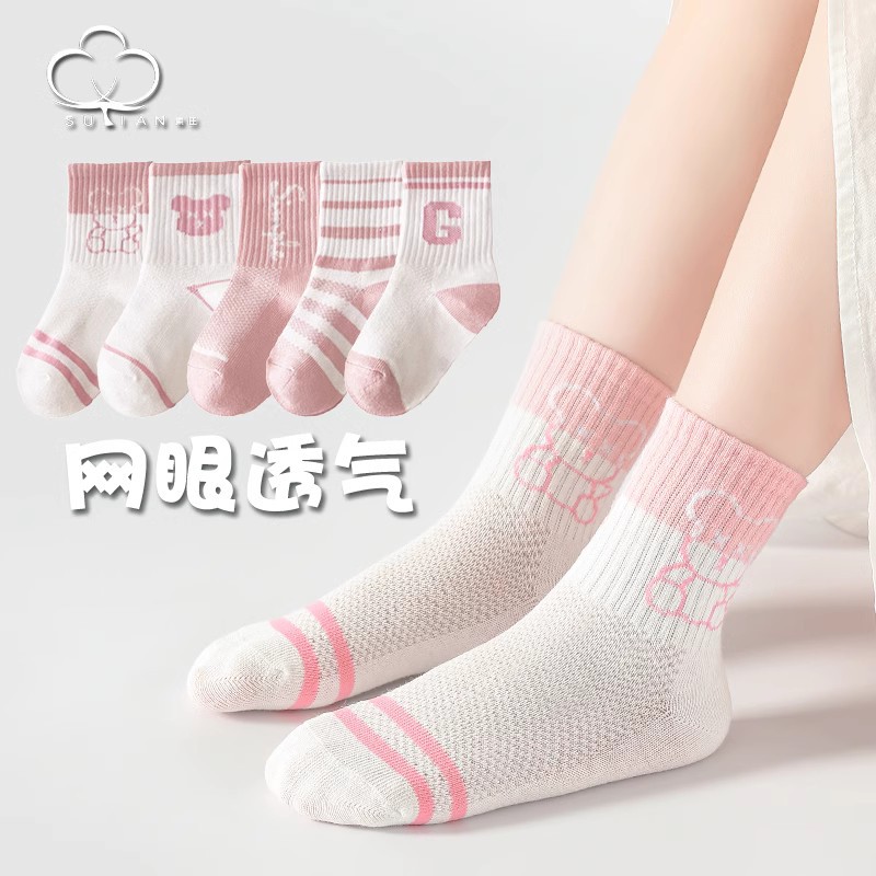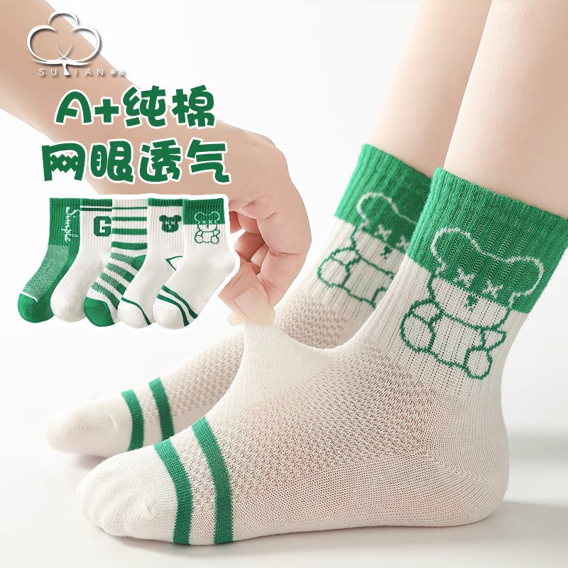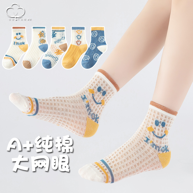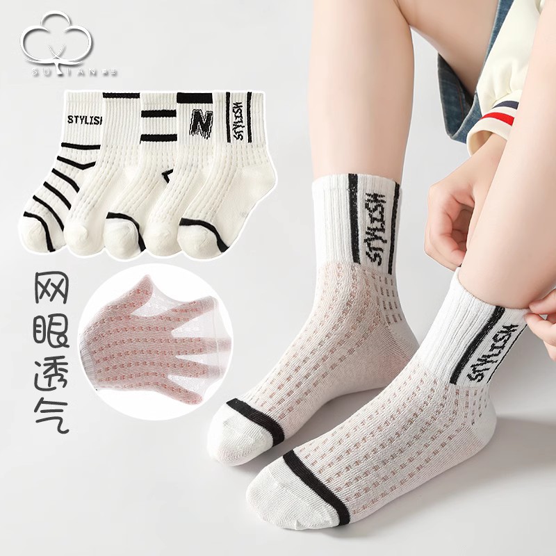 메쉬 어린이 양말 미드 튜브 양말 여름 얇은 면 양말 통기성 땀 흡수 한국식 소년 소녀 아기 긴 튜브