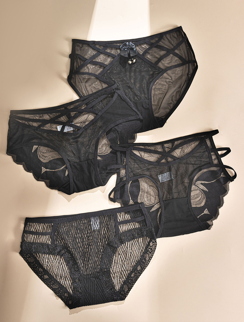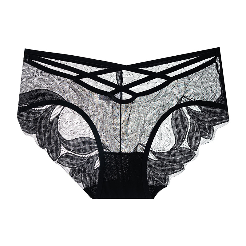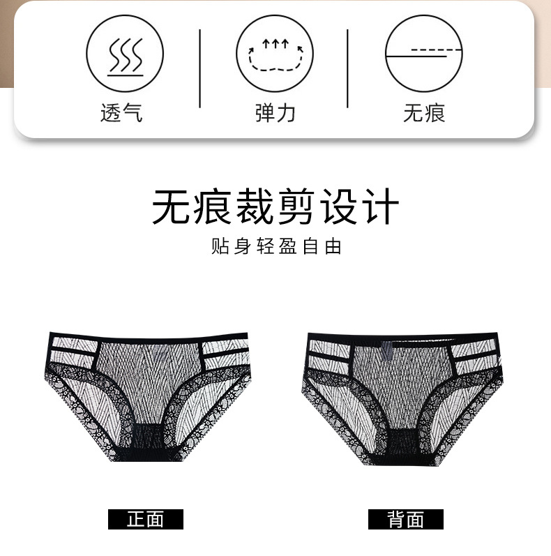 레이스 속옷 여성의 섹시한 매력적인 투명 메쉬 유혹 아이스 실크 원활한 면 가랑이 삼각형 반바지 머리 여름 얇은 숙녀