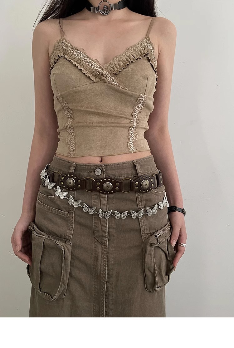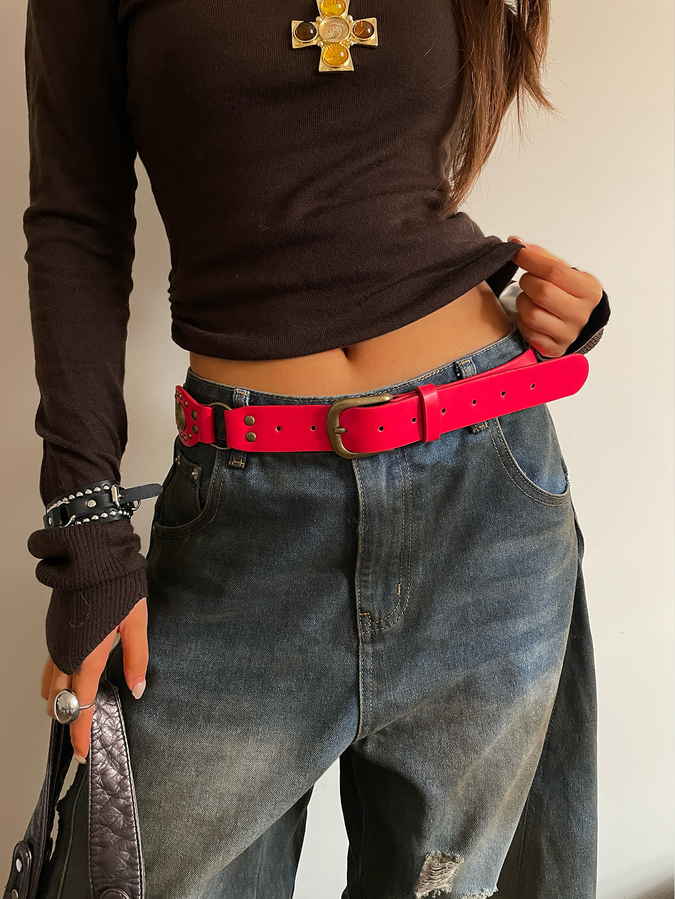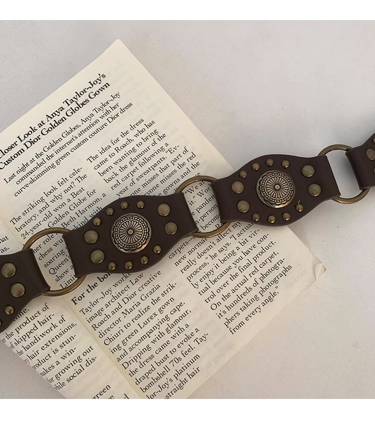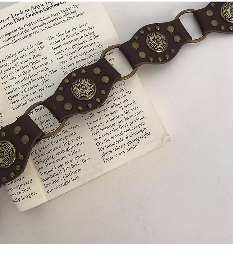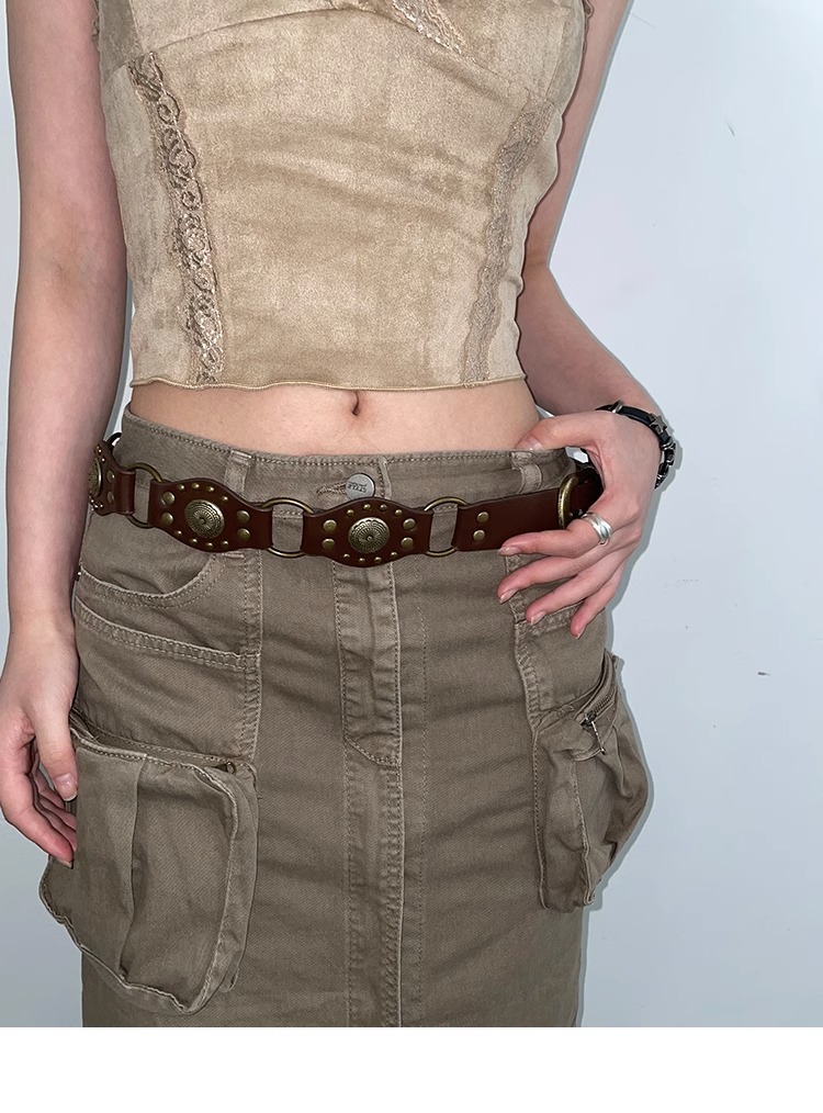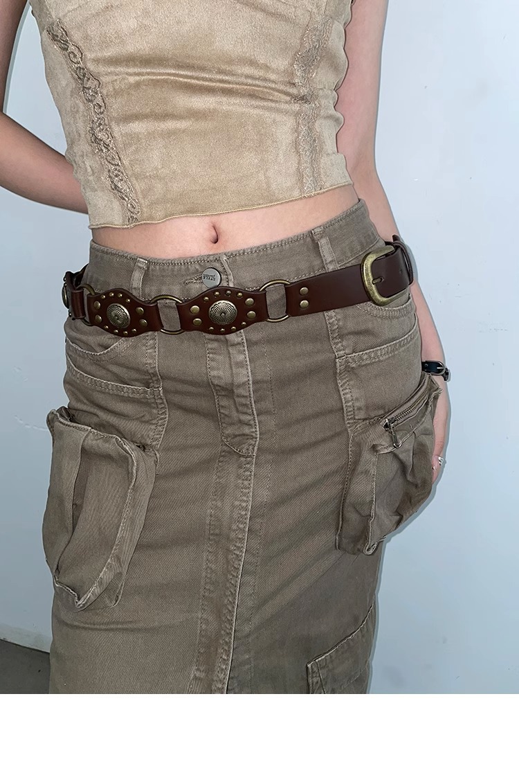 여성용 웨스턴 데님 벨트 2025 새로운 미국 복고풍 브라운 리벳 벨트 다용도 청바지 벨트 스타일