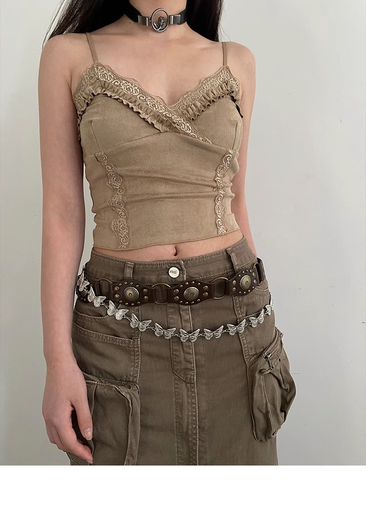 여성용 웨스턴 데님 벨트 2025 새로운 미국 복고풍 브라운 리벳 벨트 다용도 청바지 벨트 스타일스토어 가기