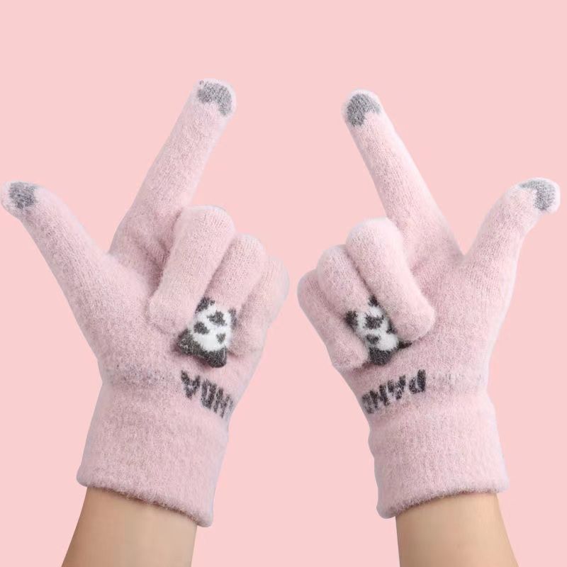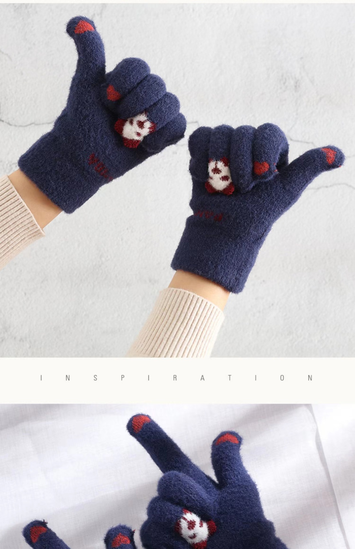 여성용 핑거 베어 장갑, 귀여운 만화 캐릭터, 학생용, 가을 겨울용 따뜻한 한국 버전, 핑거 베어, 다용도, 사이클링, 터치 스크린스토어 가기