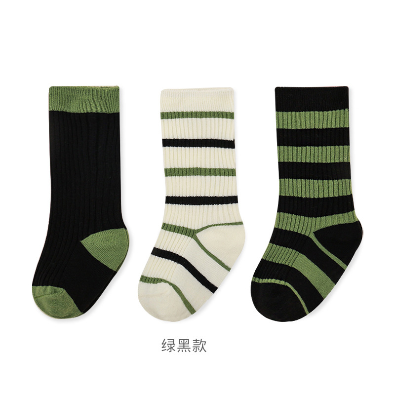 3 쌍 가을과 겨울 순면 97% 빗질 아기 중간 배럴 더블 바늘 양말 유아 소년 소녀 학생 스트라이프스토어 가기