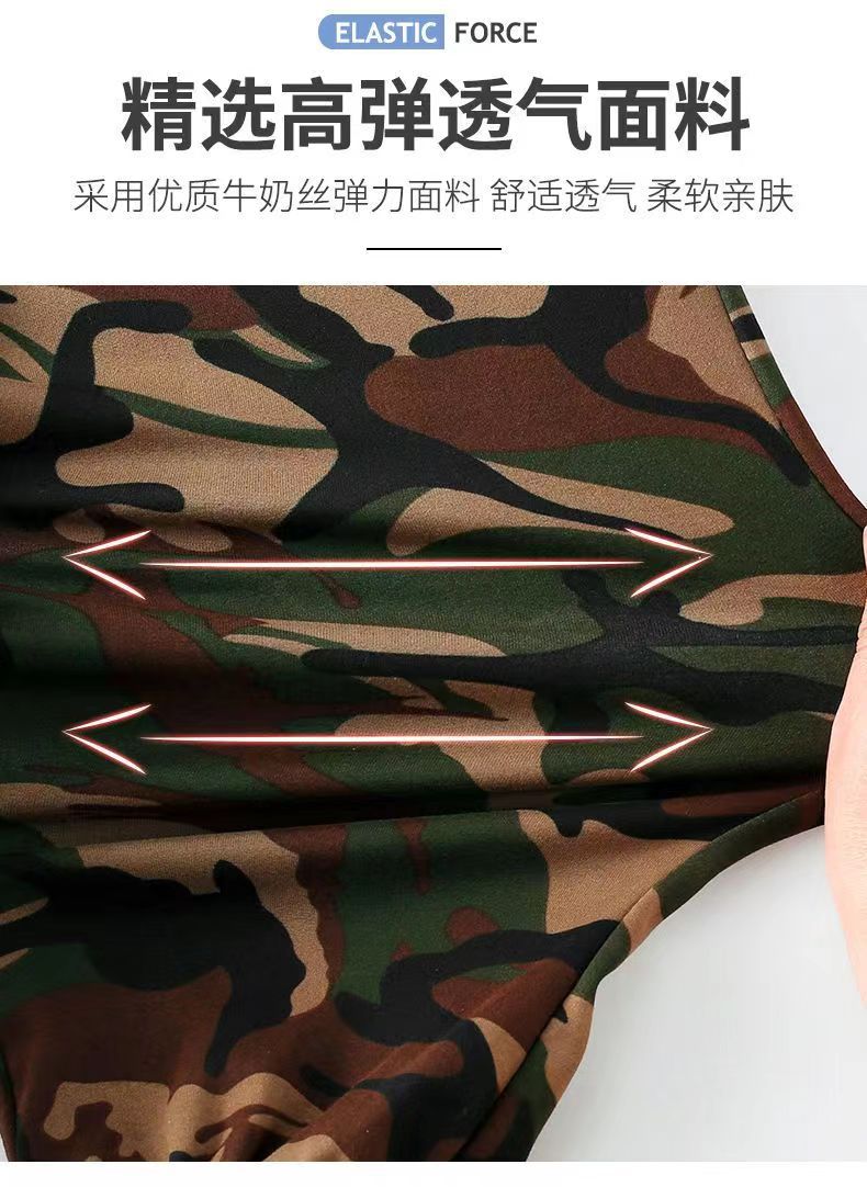 • 업그레이드된 한국 실크 그린 플라워 위장 스트레치 탑