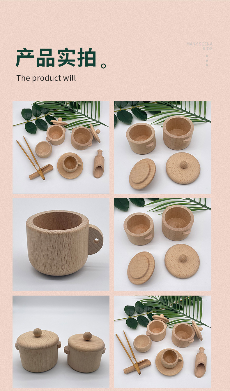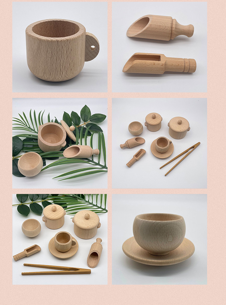 어린이 조기 교육 장면 모방 시뮬레이션 주방 장난감 너도밤 나무 차 예술 8 종 세트 놀이 가정 주방 차 세트