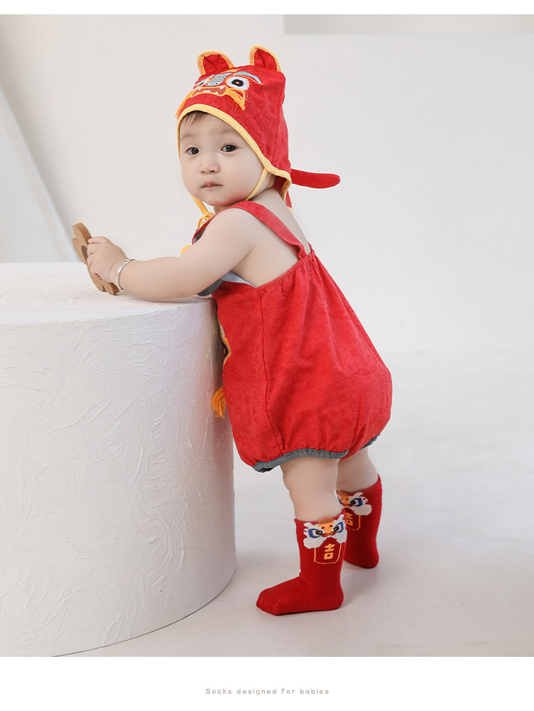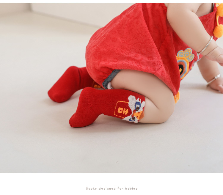 신생아 양말 느슨한 뼈없는 발이없는 아기 양말 남자와 여자의 새해 큰 빨간면 양말