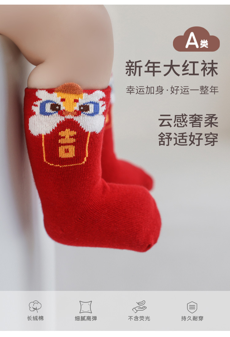 신생아 양말 느슨한 뼈없는 발이없는 아기 양말 남자와 여자의 새해 큰 빨간면 양말스토어 가기