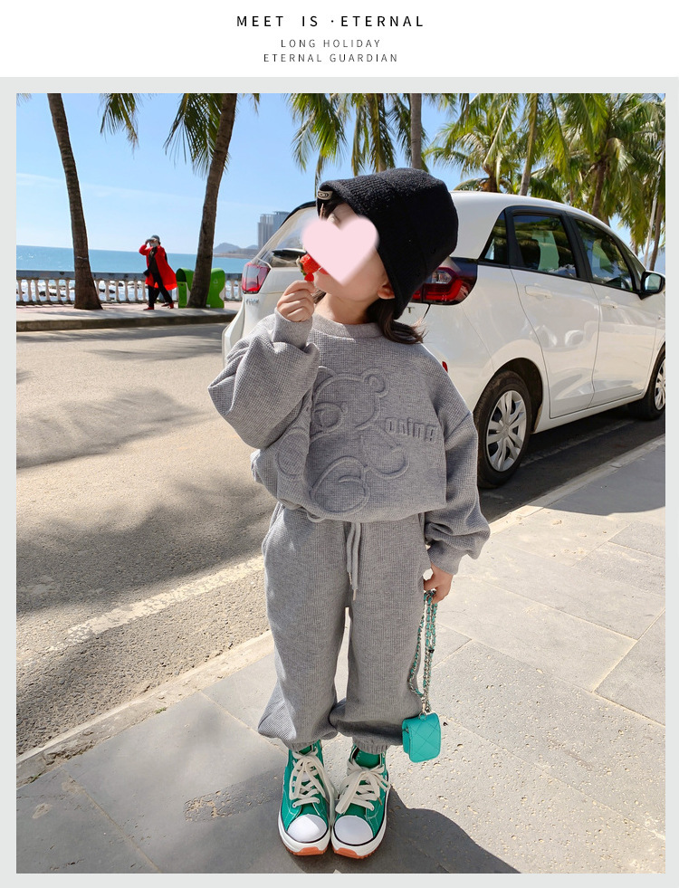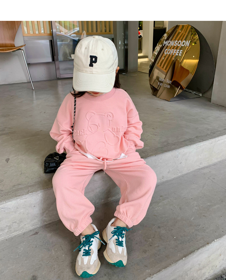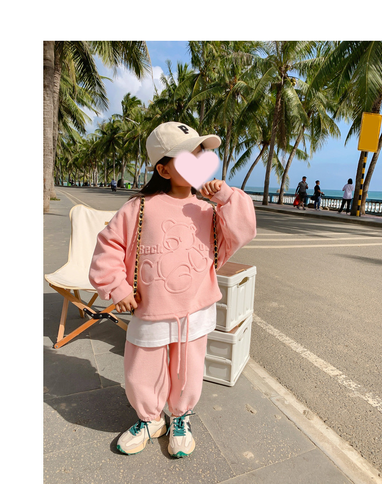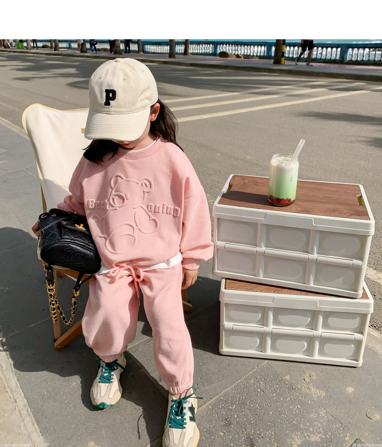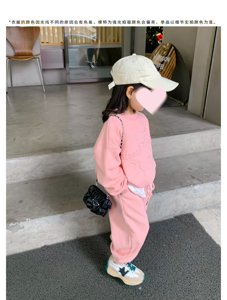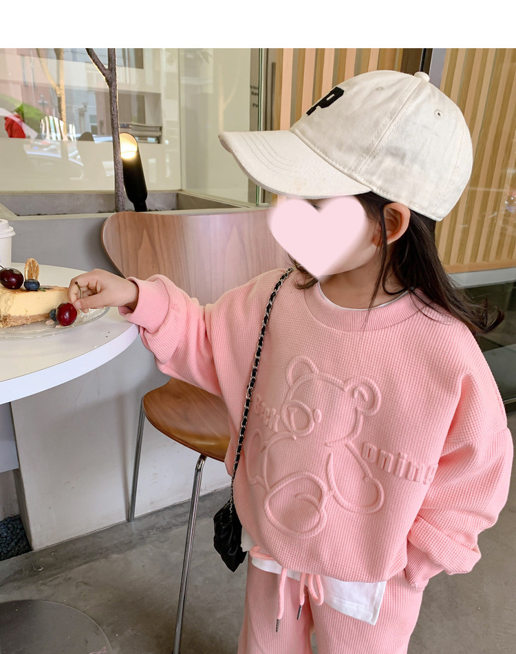 여아 여름 한국 캐주얼 정장 2024 가을 신상 아동 만화 곰 탑과 스웨트팬츠 투피스 트렌디 세트스토어 가기