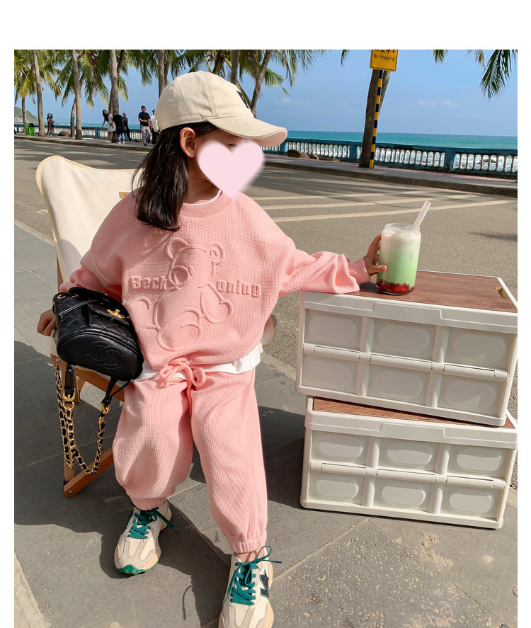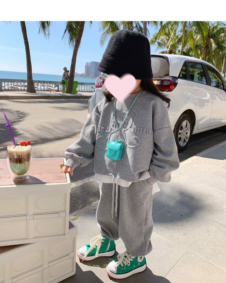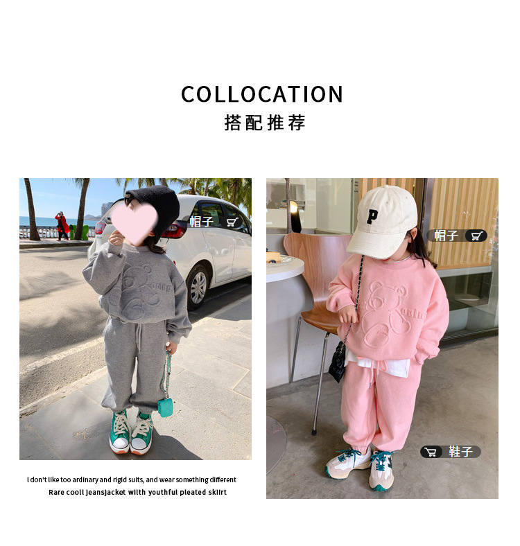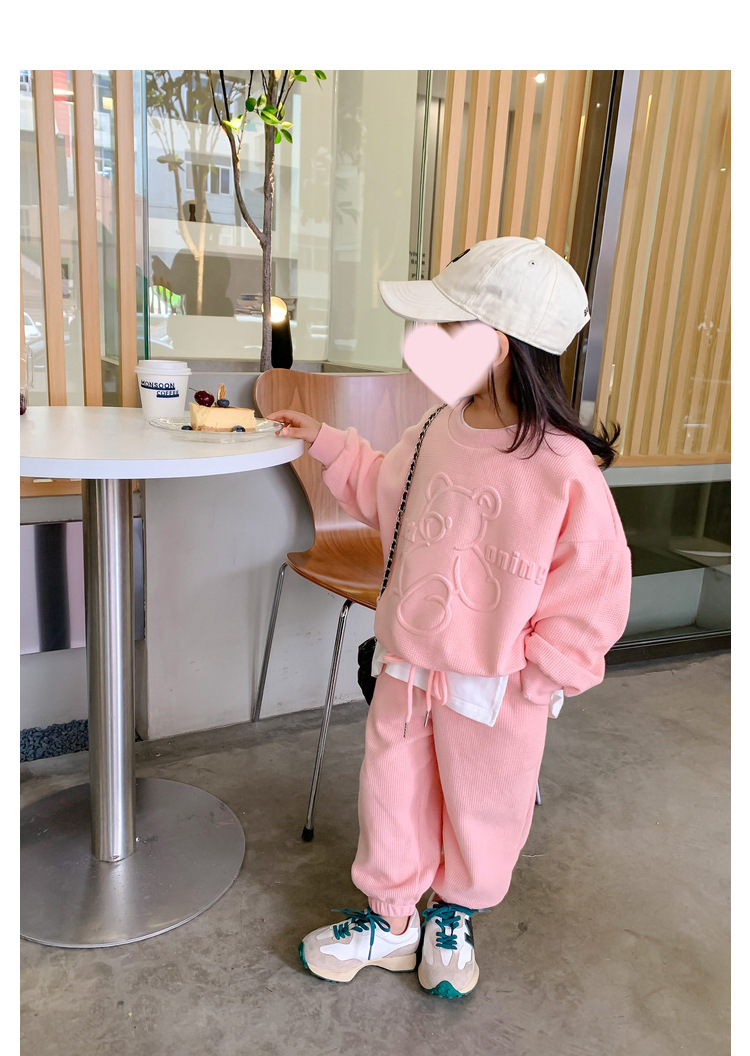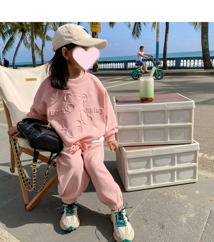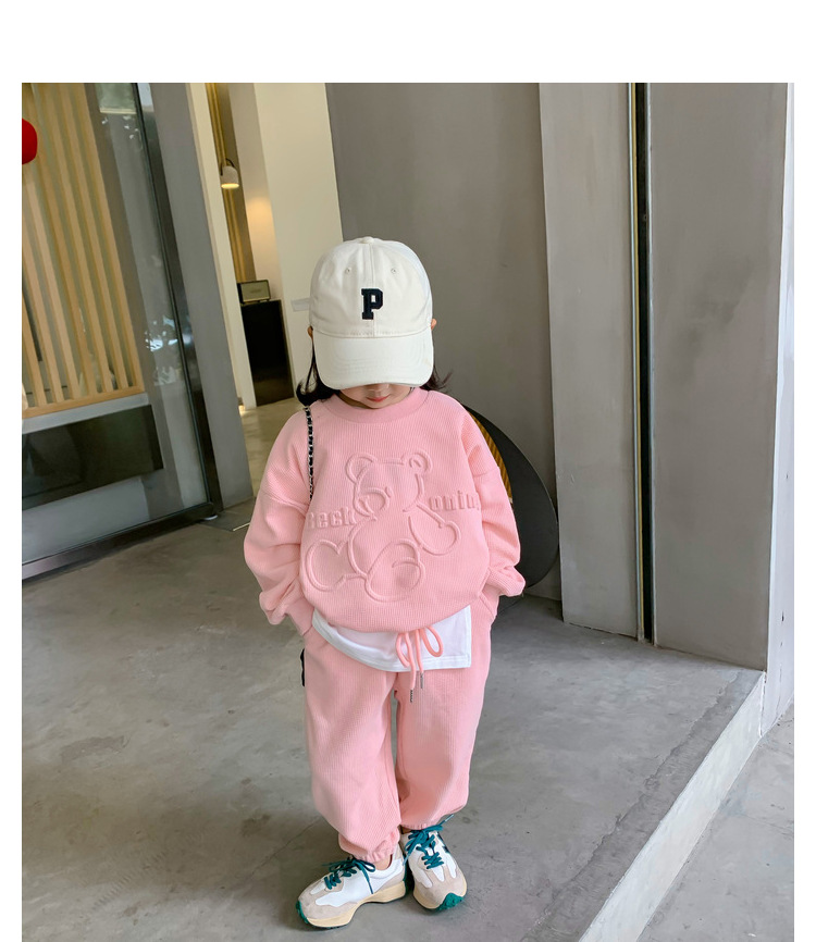 여아 여름 한국 캐주얼 정장 2024 가을 신상 아동 만화 곰 탑과 스웨트팬츠 투피스 트렌디 세트스토어 가기