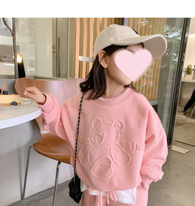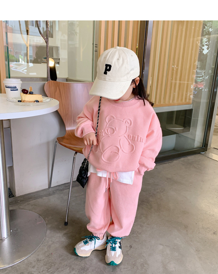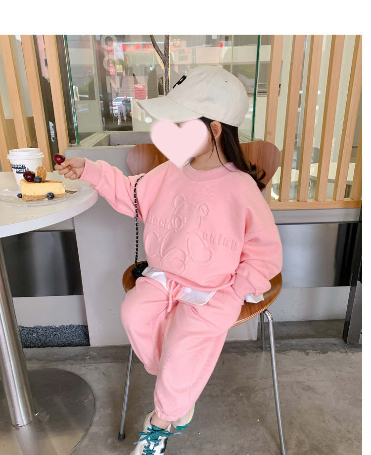 여아 여름 한국 캐주얼 정장 2024 가을 신상 아동 만화 곰 탑과 스웨트팬츠 투피스 트렌디 세트
