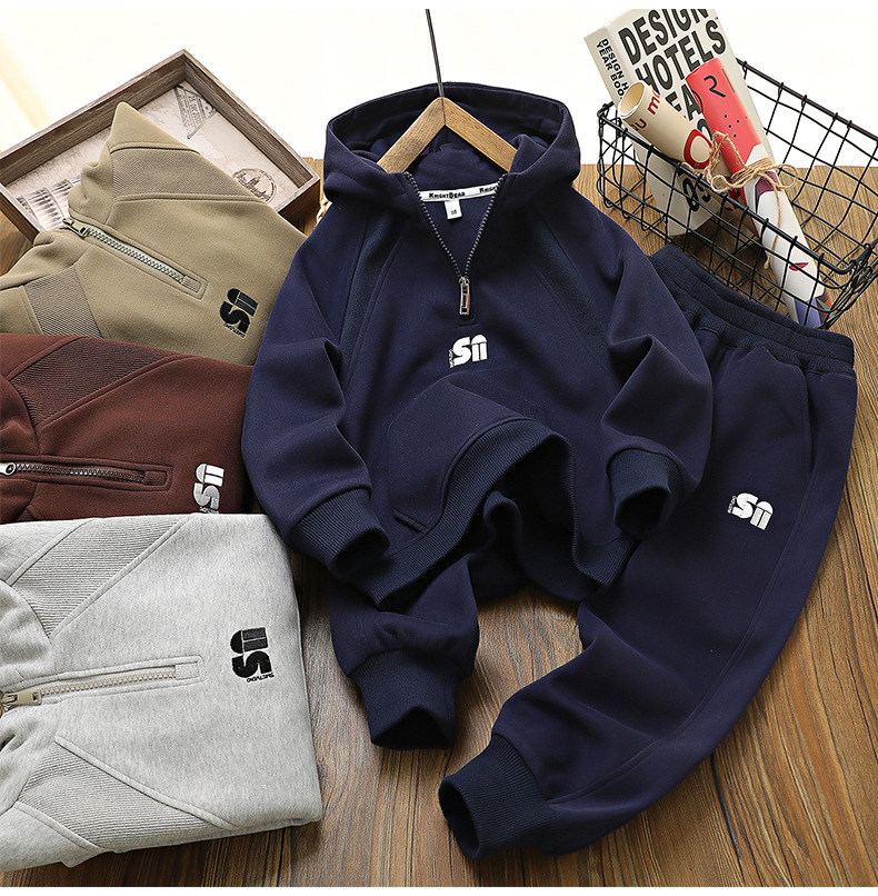 아동복 남아 가을 의류 세트 2025 봄 가을 스웨트셔츠 중대형 아동복 투피스 세트 도매 스포츠 스타일