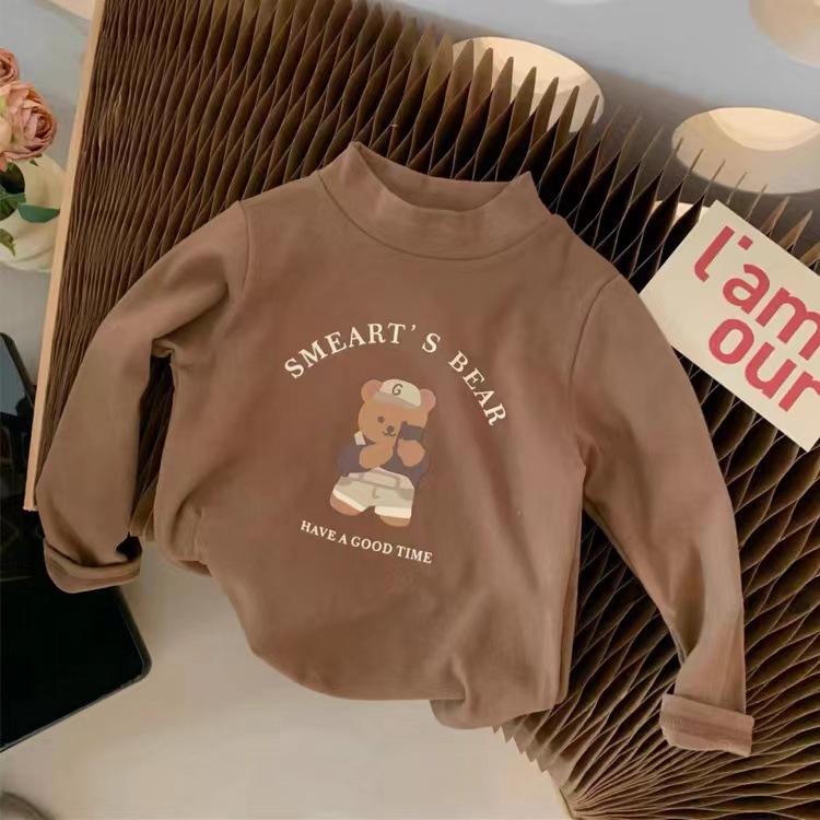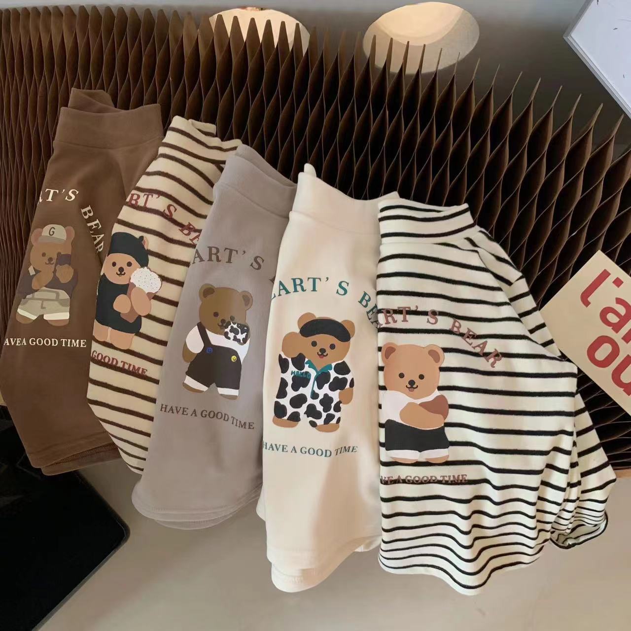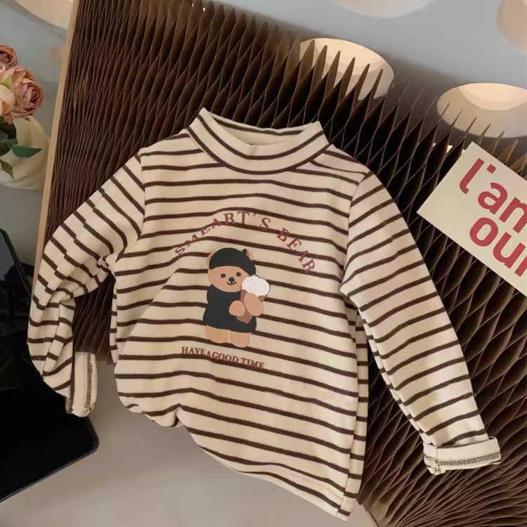 가을과 겨울 2023 어린이베이스 셔츠 벨벳 만화 인쇄 긴 소매 따뜻한 스트라이프 롱 티셔츠 탑스토어 가기