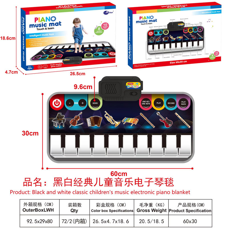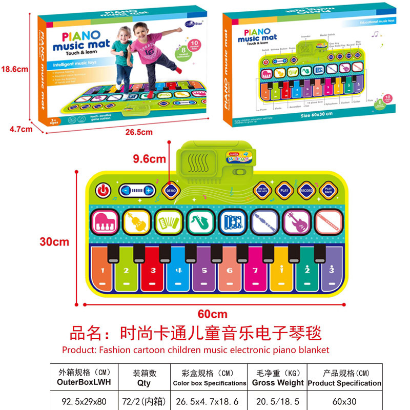 국경 간 전자 상거래 어린이 조기 교육 만화 동물 음악 담요 장난감 아기 계발 전자 피아노 매트 게임 매트 생성