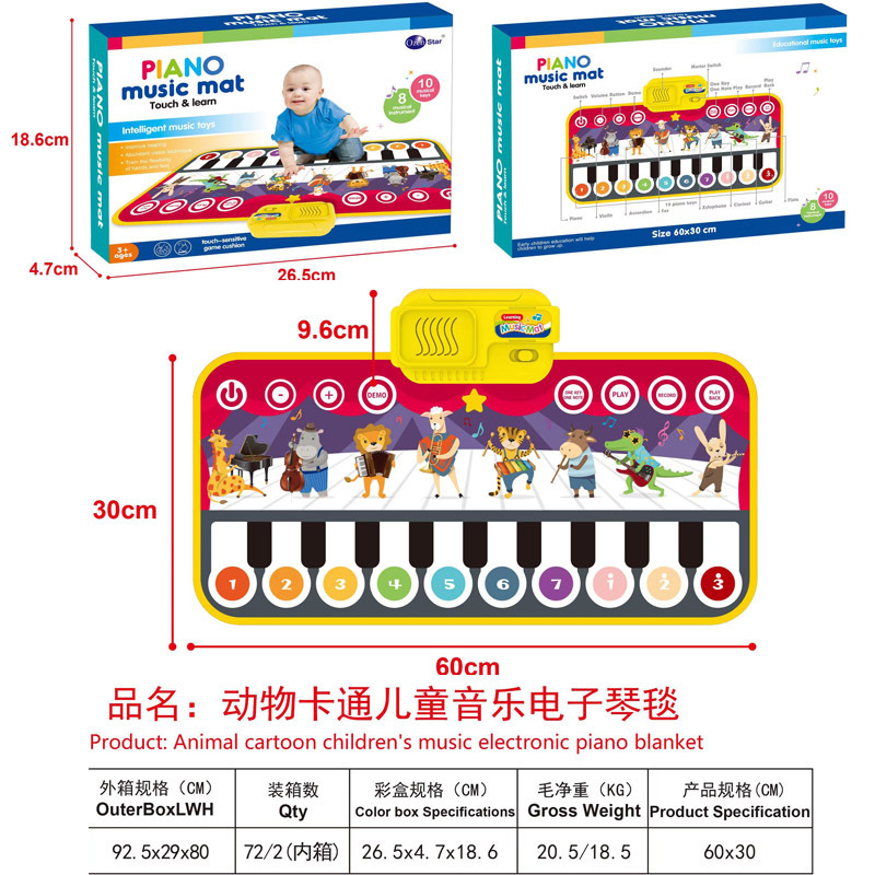 국경 간 전자 상거래 어린이 조기 교육 만화 동물 음악 담요 장난감 아기 계발 전자 피아노 매트 게임 매트 생성스토어 가기