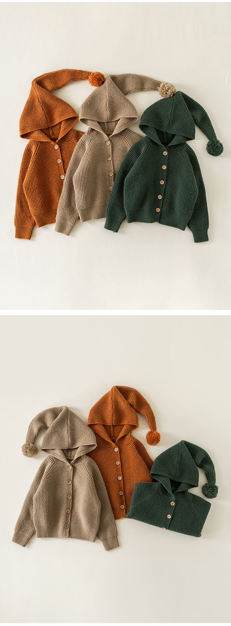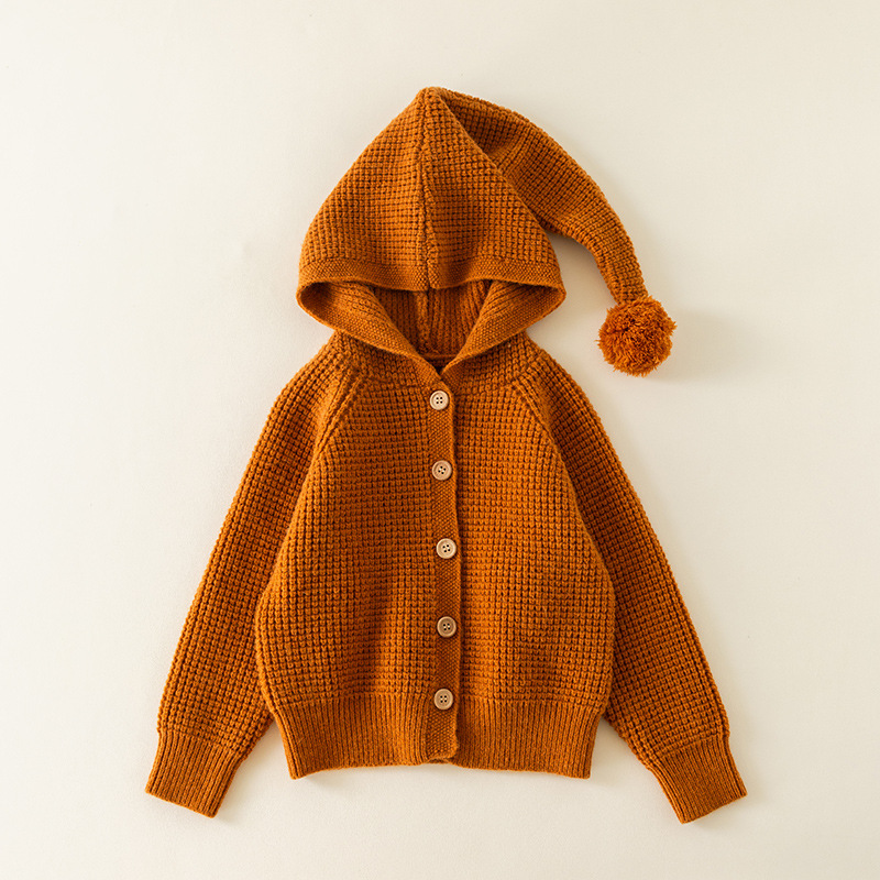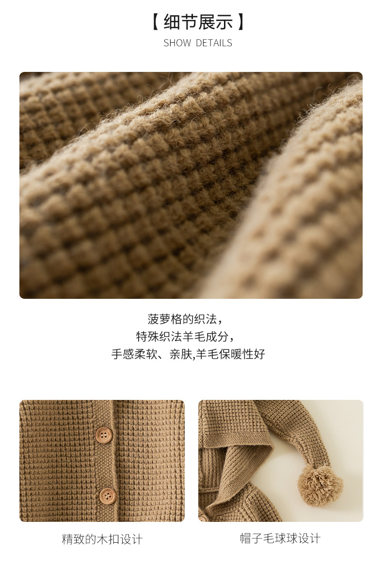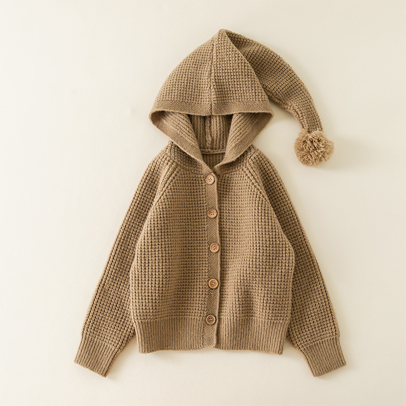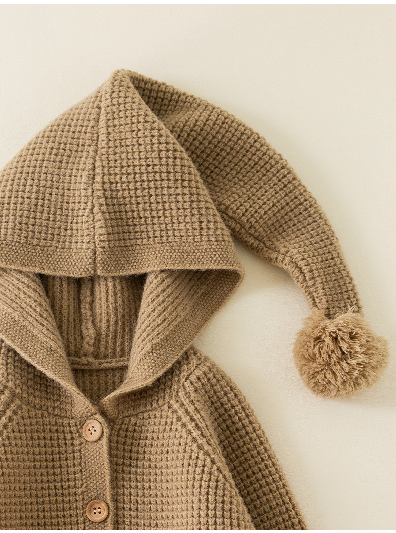 2024 유럽 및 미국 가을 스타일 남녀 아기용 후드 니트 스웨터 따뜻하고 편안한 어린이용 울 파인애플 패턴 코트