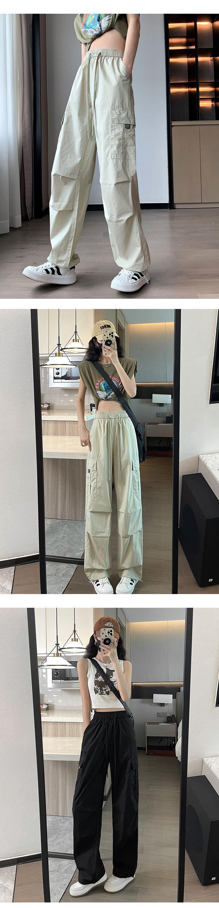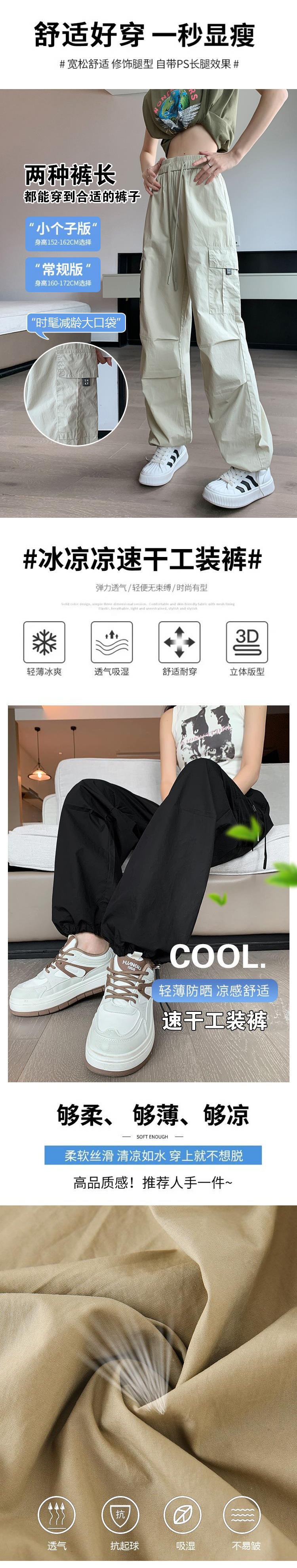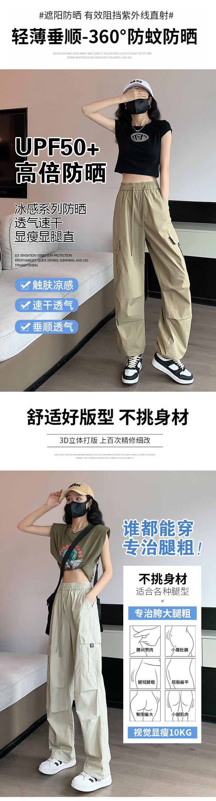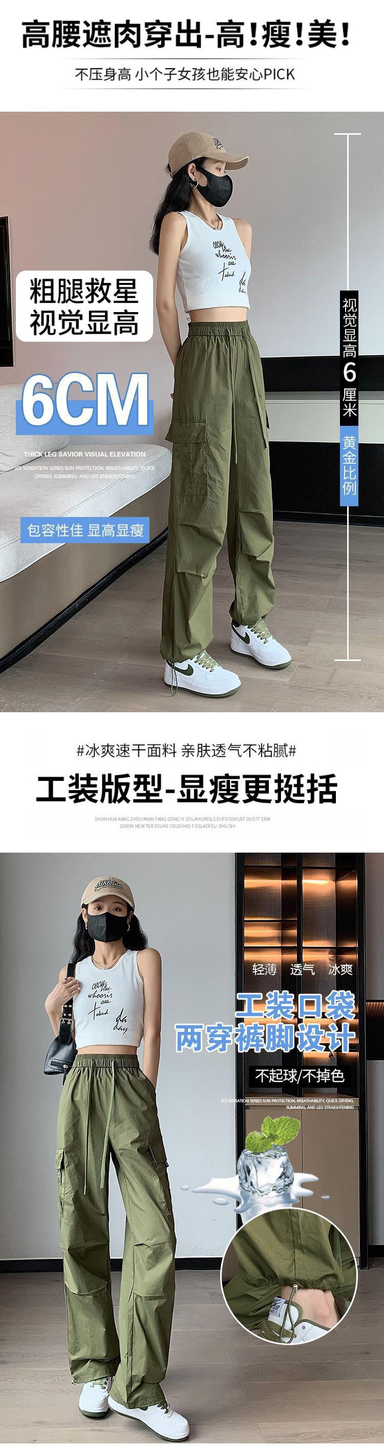 아이스 실크 속건 작업 바지 여성용 여름 얇은 하이 웨이스트 졸라매는 끈 등산 바지 캐주얼 아메리칸 스타일 할란 스포츠 바지스토어 가기