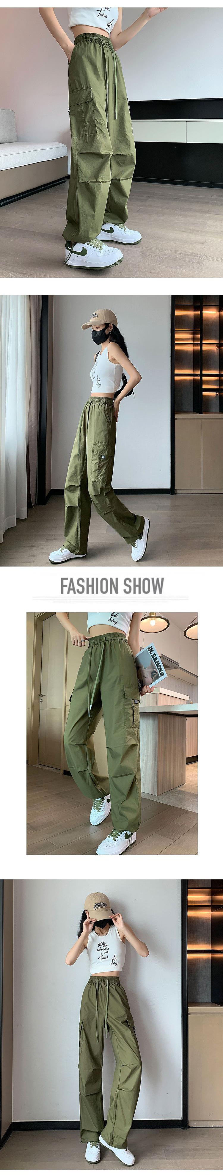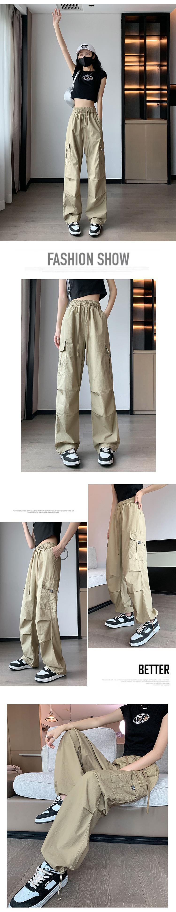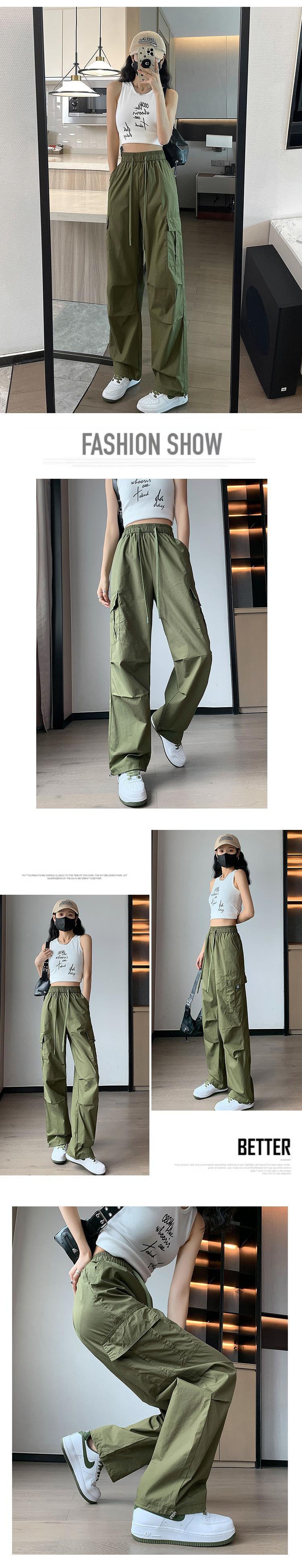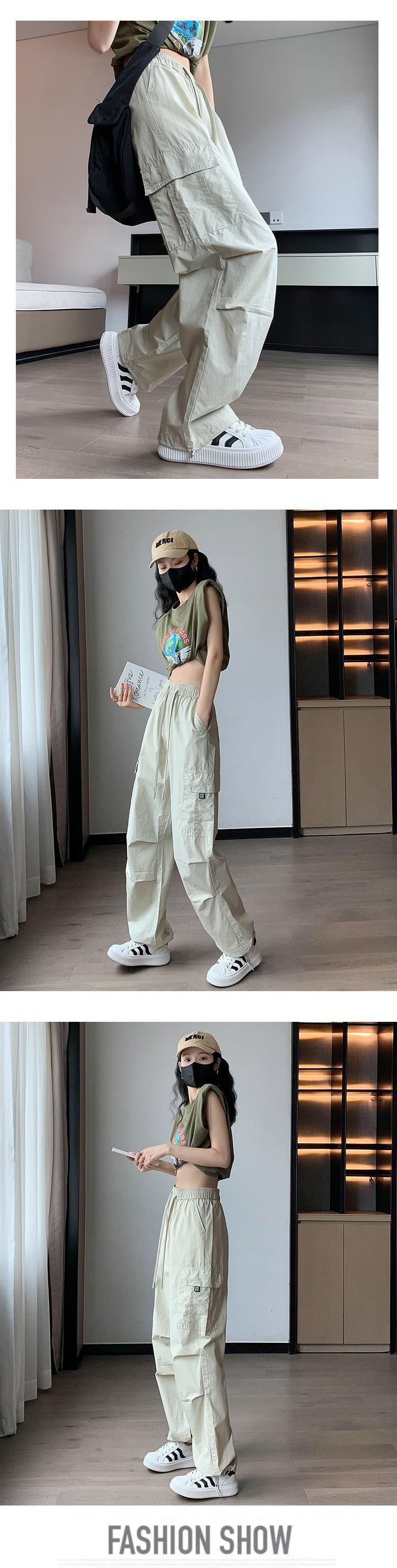 아이스 실크 속건 작업 바지 여성용 여름 얇은 하이 웨이스트 졸라매는 끈 등산 바지 캐주얼 아메리칸 스타일 할란 스포츠 바지스토어 가기