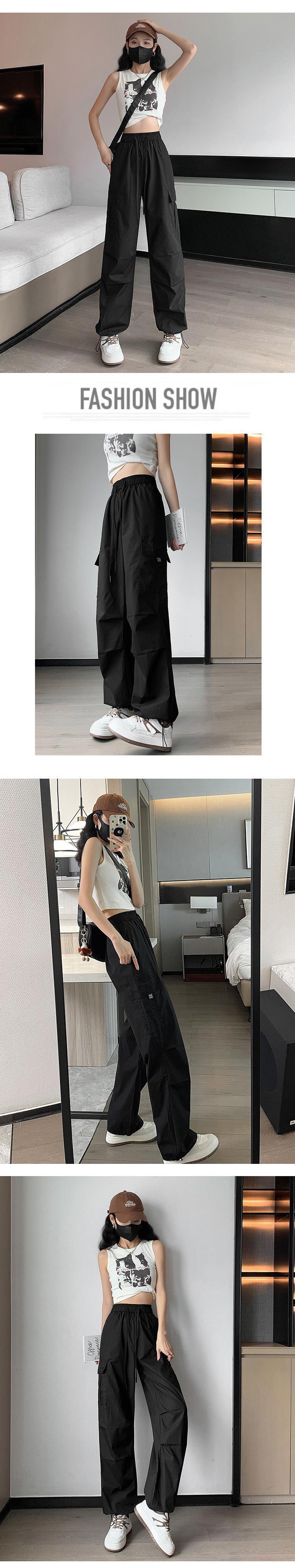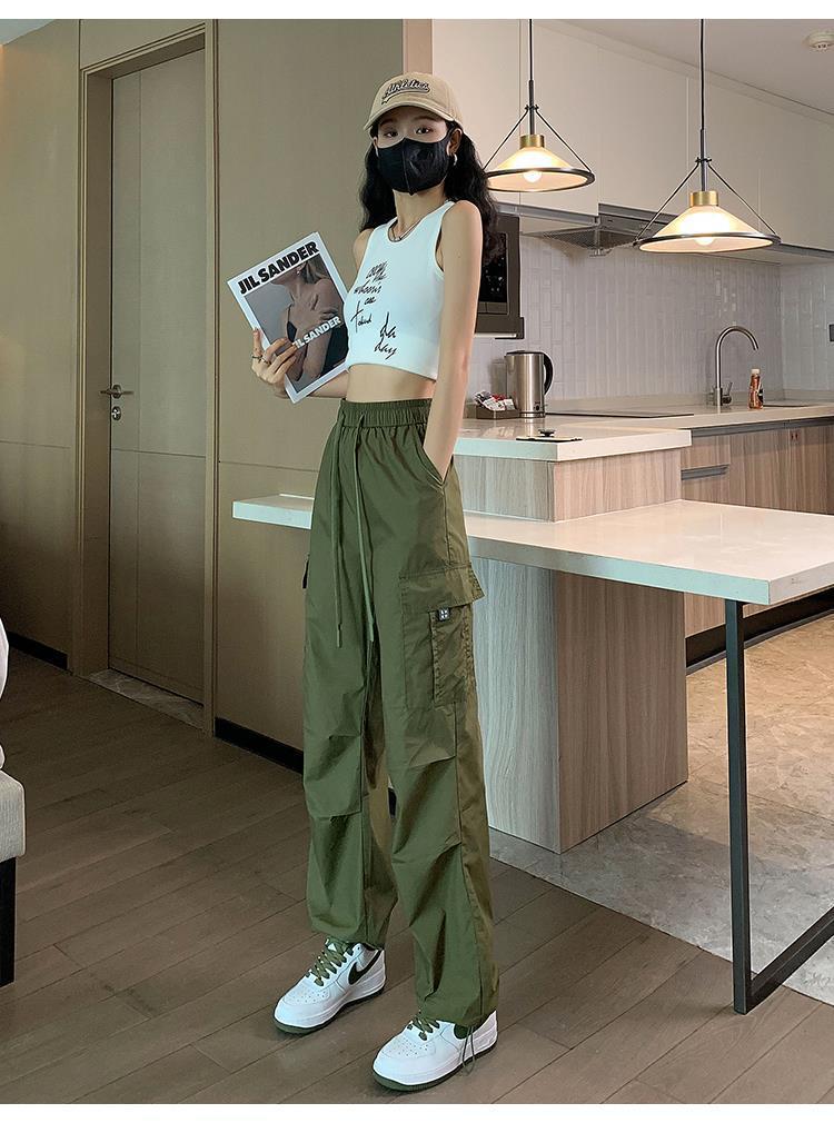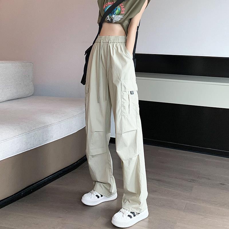아이스 실크 속건 작업 바지 여성용 여름 얇은 하이 웨이스트 졸라매는 끈 등산 바지 캐주얼 아메리칸 스타일 할란 스포츠 바지
