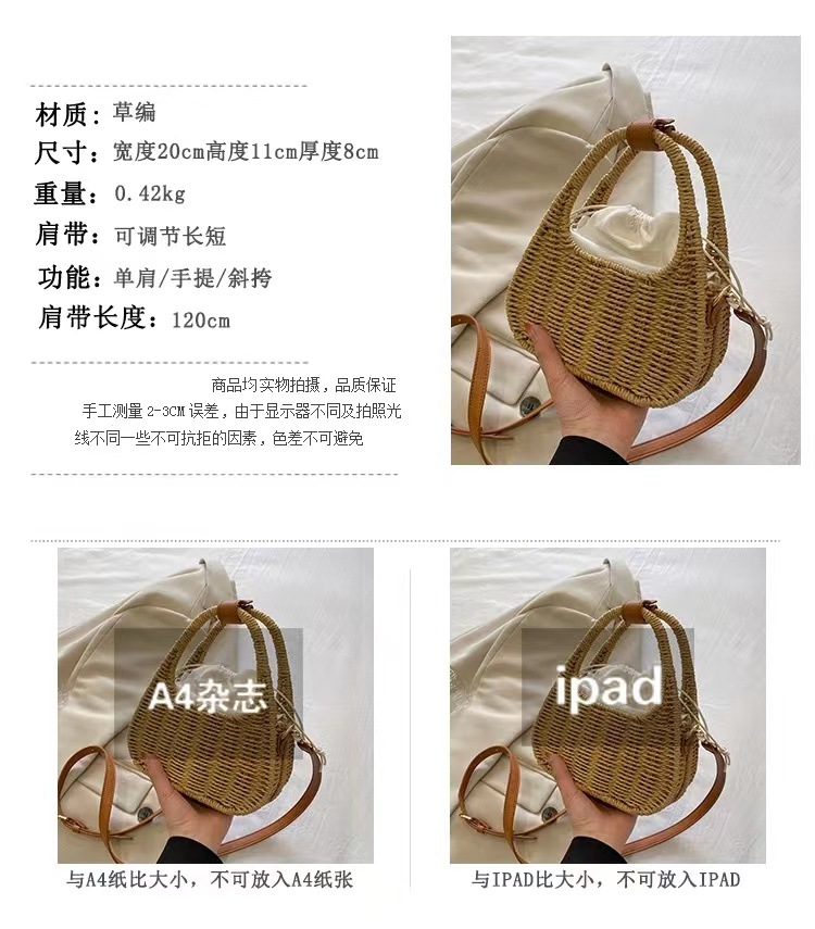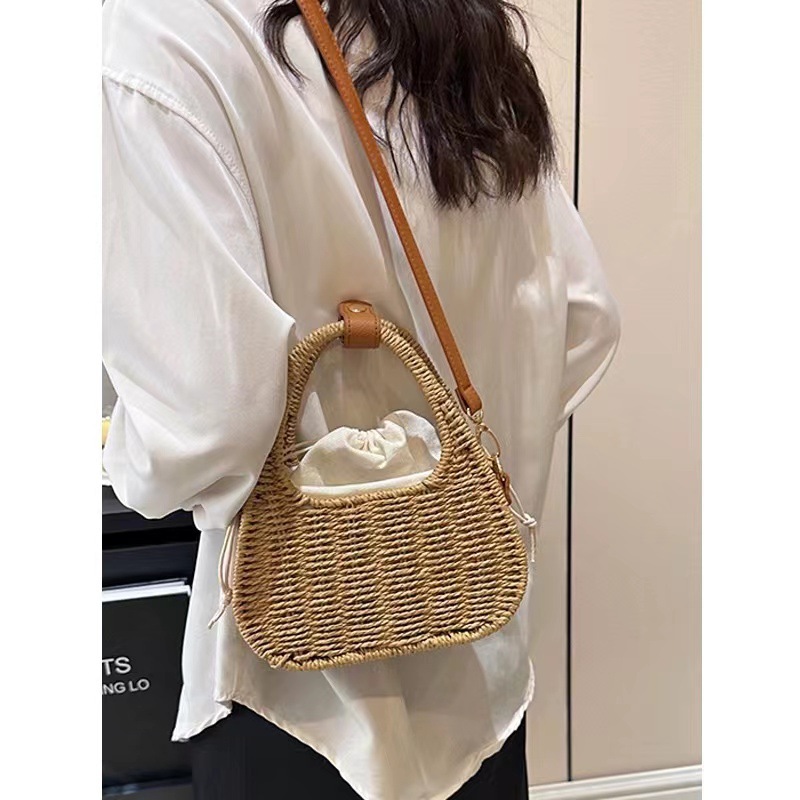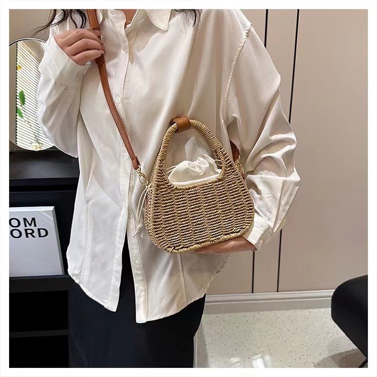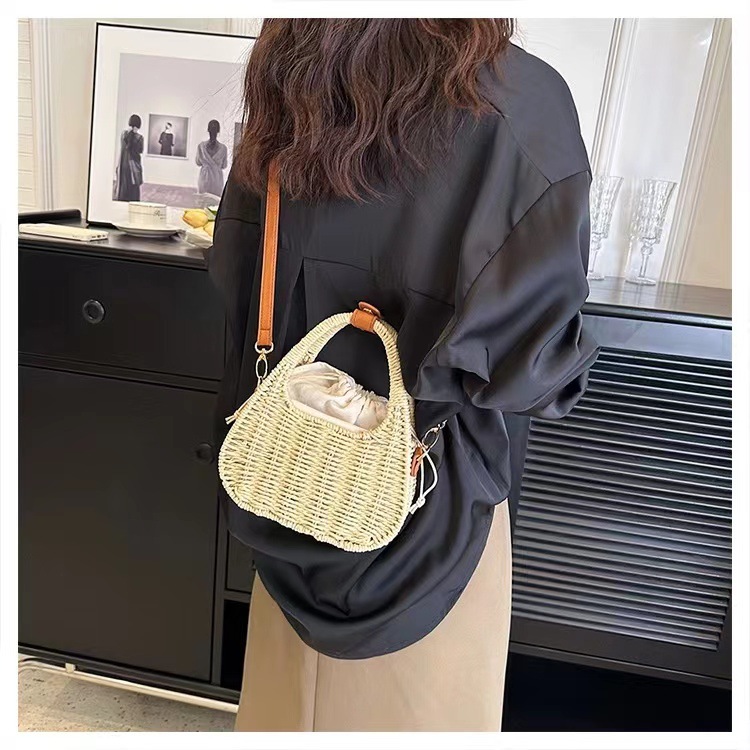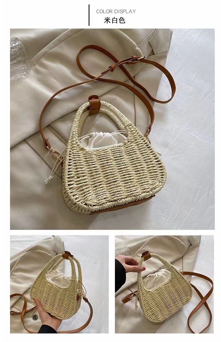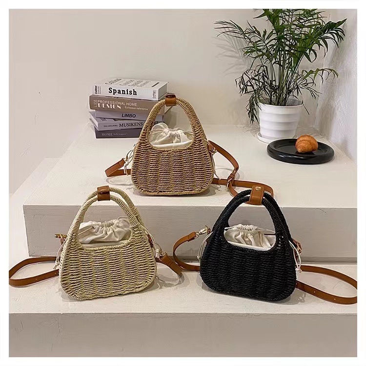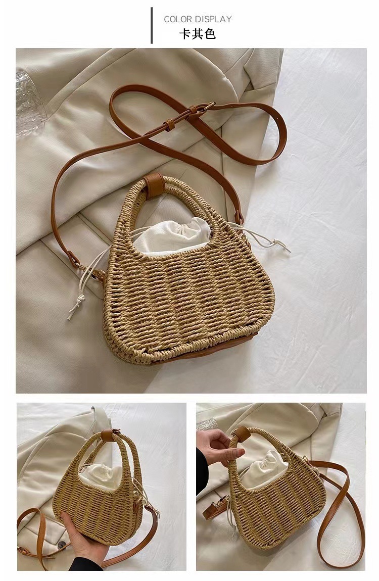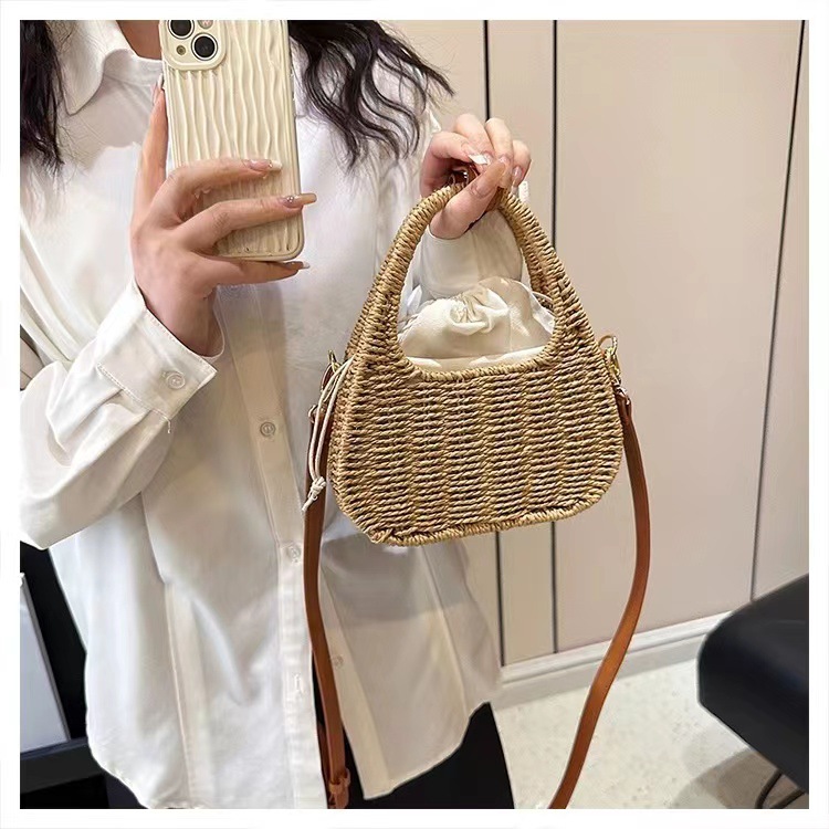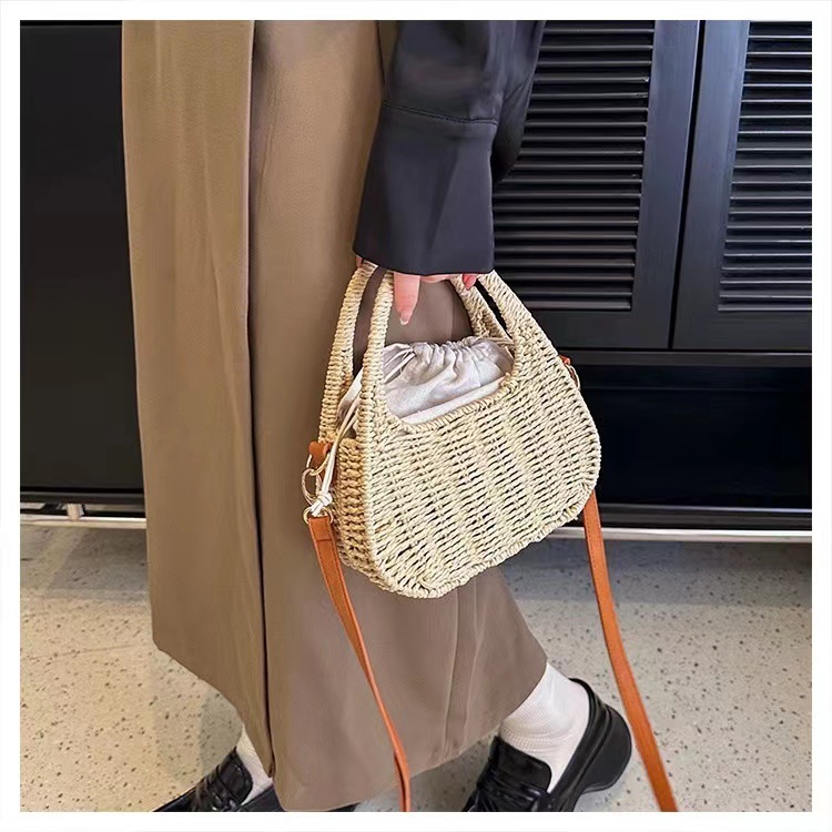 한국식 슬링 밀짚 가방 패션 숄더 밀짚 가방 짠 가방 홀리데이 스타일 비치 가방 휴대용 여성 가방