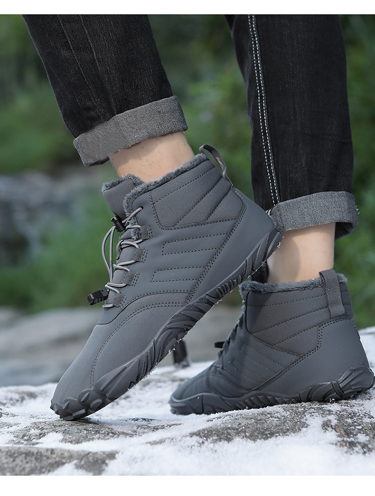 남자의 겨울 야외 방수 면 신발 기모 두꺼운 따뜻한 등산 스노우 부츠 미끄럼 방지 내마모성 남성용 중간 길이 면 부츠