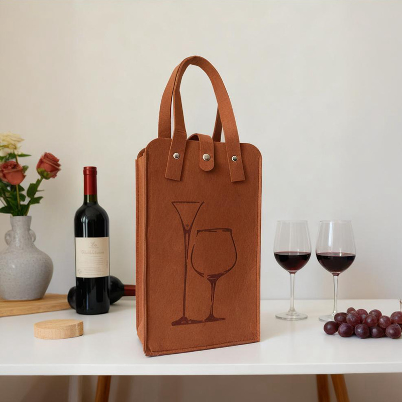 펠트 와인 가방 유행 간단한 더블 와인 동반 선물 가방 레드 와인 포장 상자 선물 가방 인쇄 가능한 로고스토어 가기