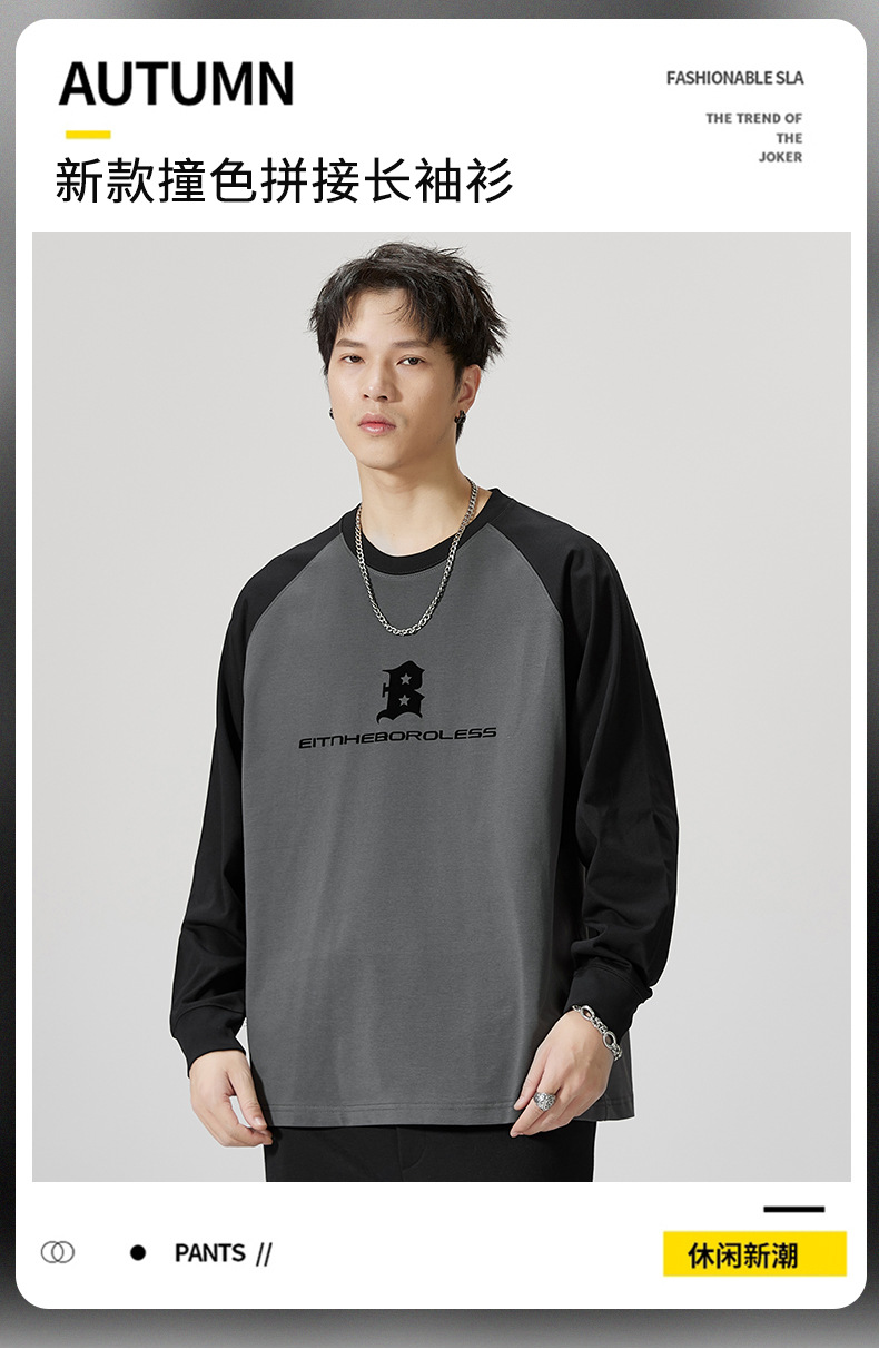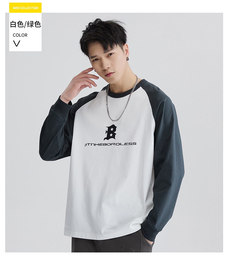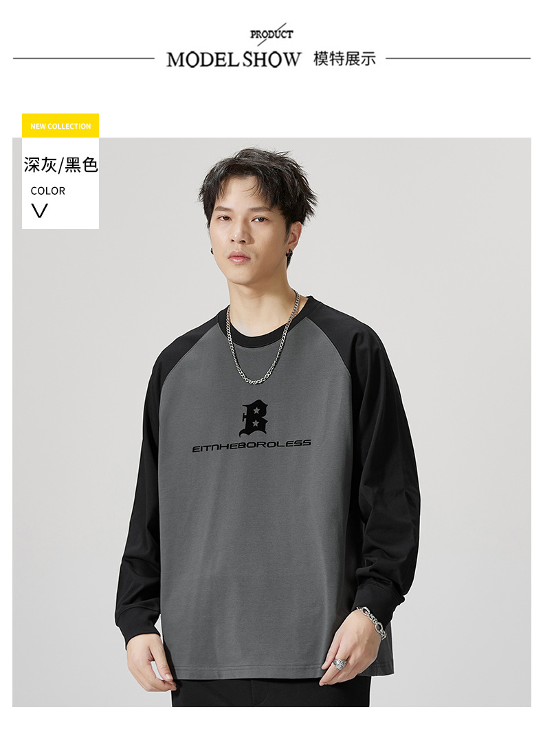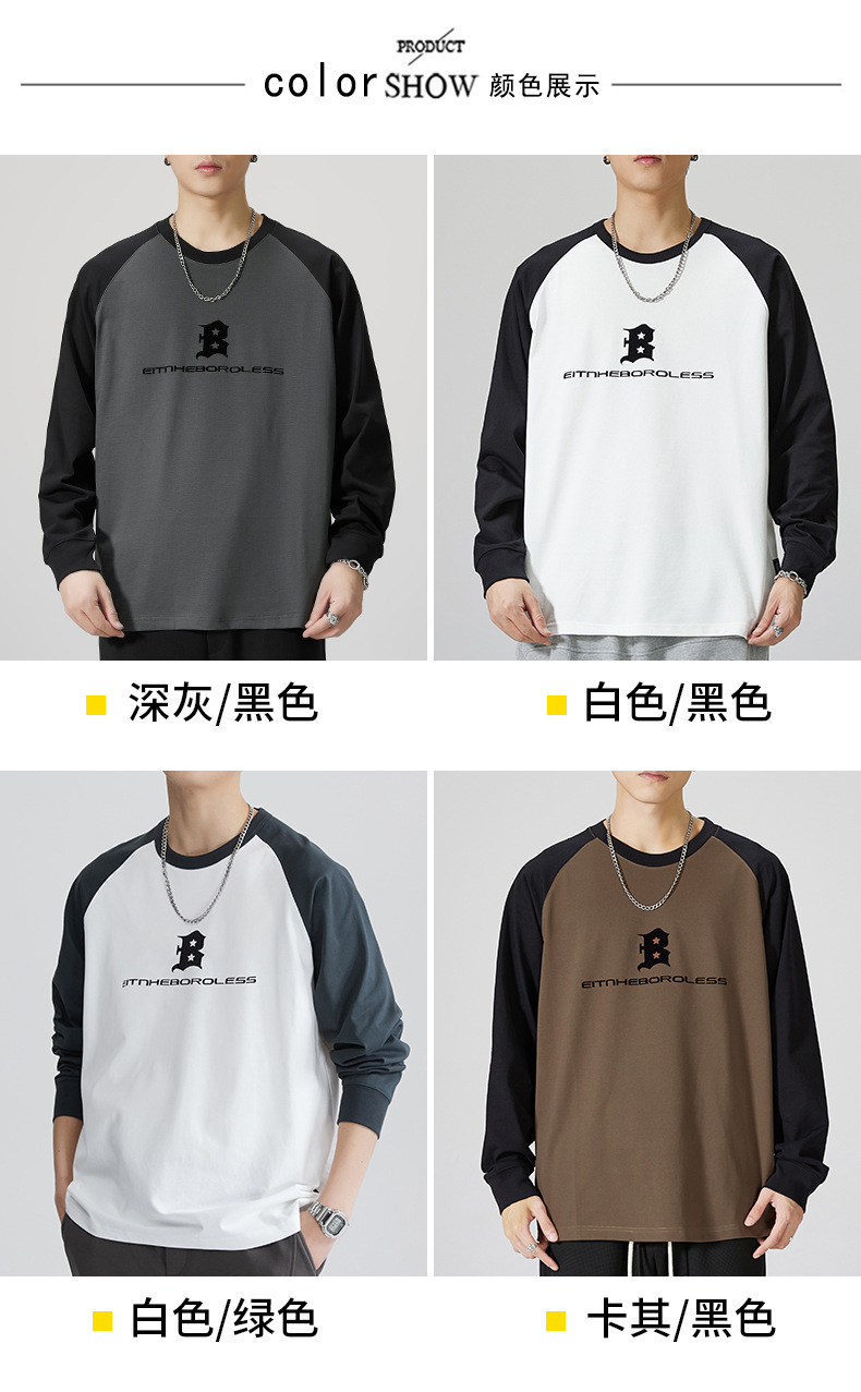 F1150 | 플러스 사이즈 남자의 가을 새로운 260g 무거운 뿔 바느질 긴 소매 티셔츠 느슨한 주름 방지 재킷 남성스토어 가기