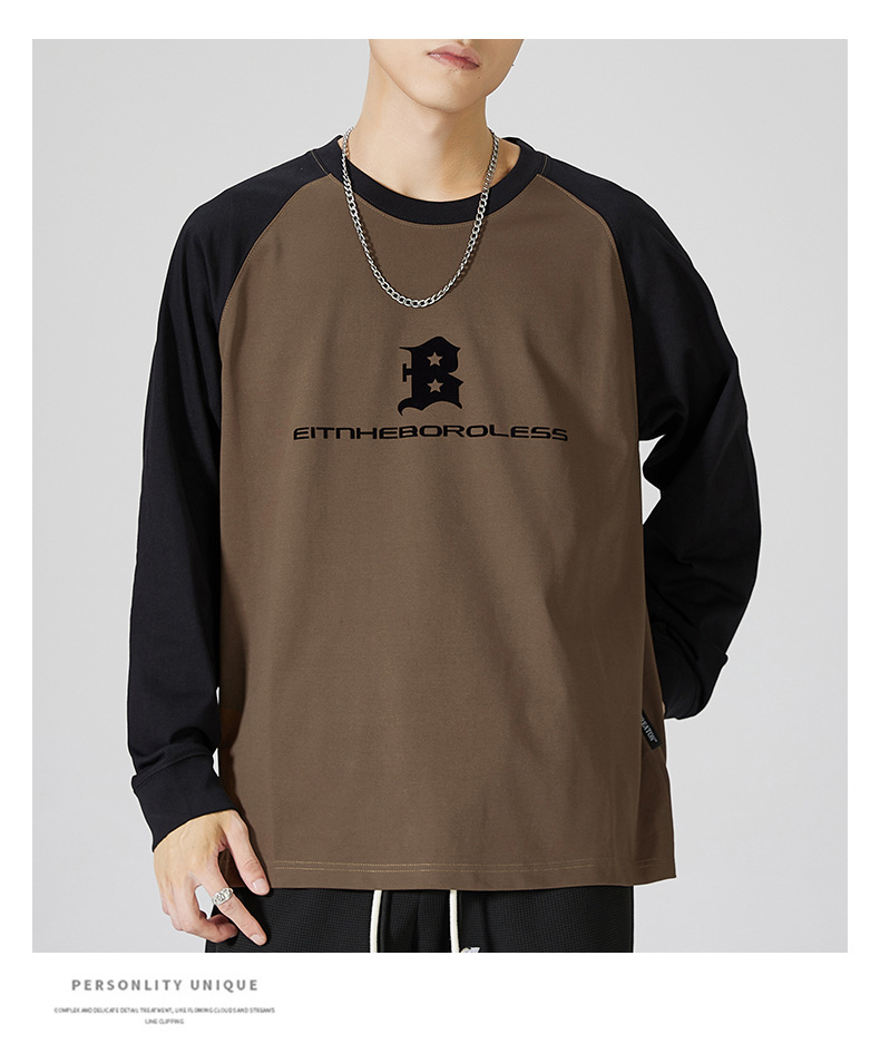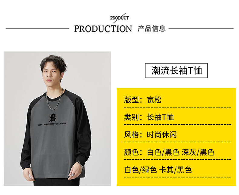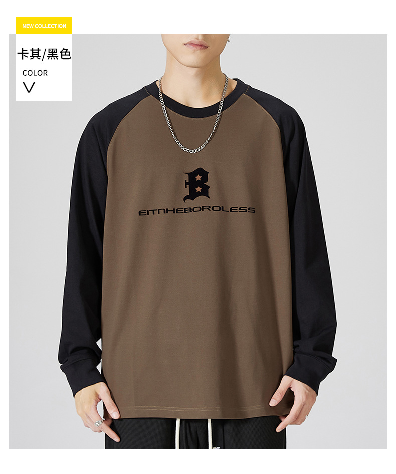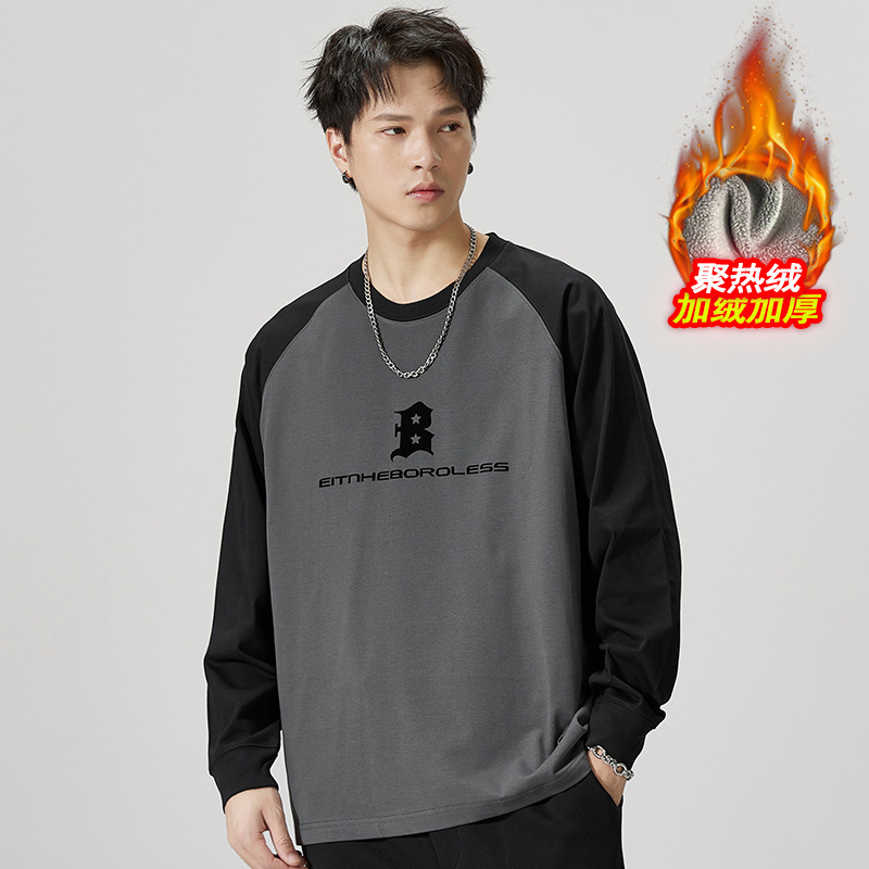F1150 | 플러스 사이즈 남자의 가을 새로운 260g 무거운 뿔 바느질 긴 소매 티셔츠 느슨한 주름 방지 재킷 남성스토어 가기