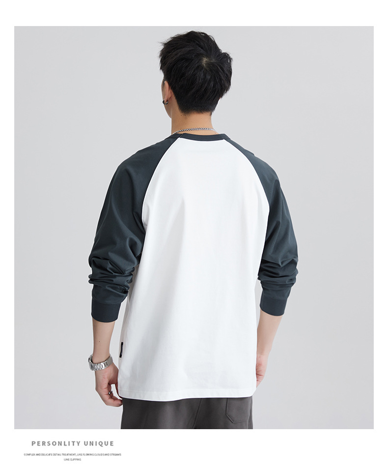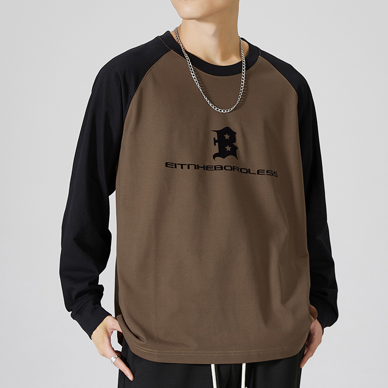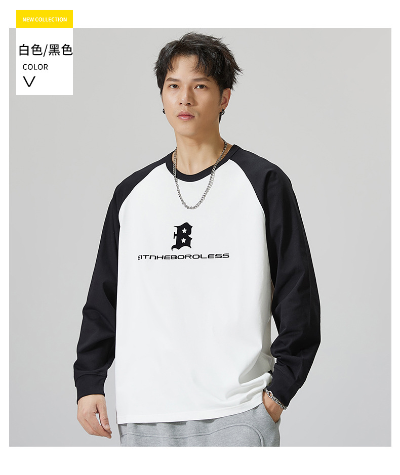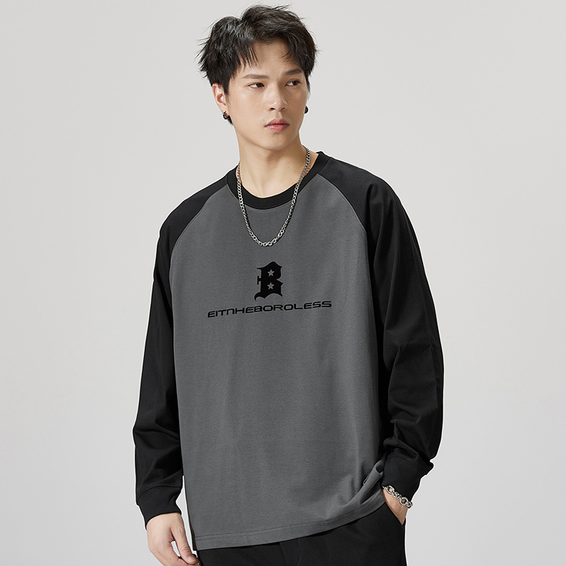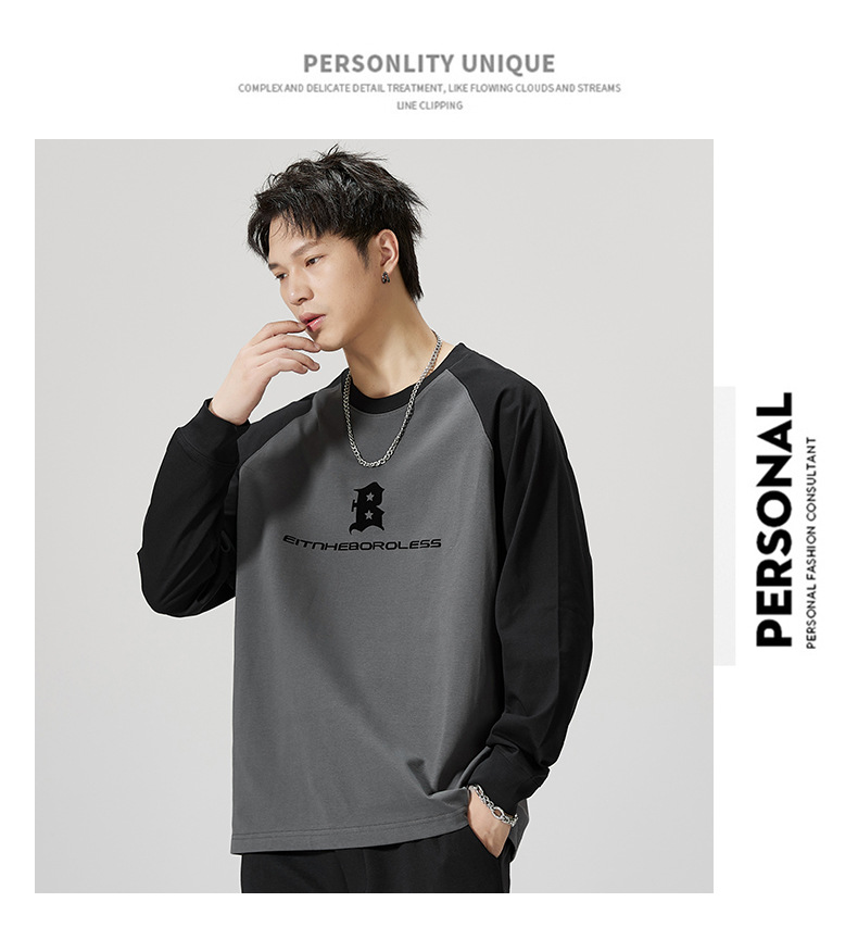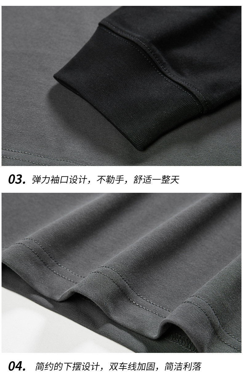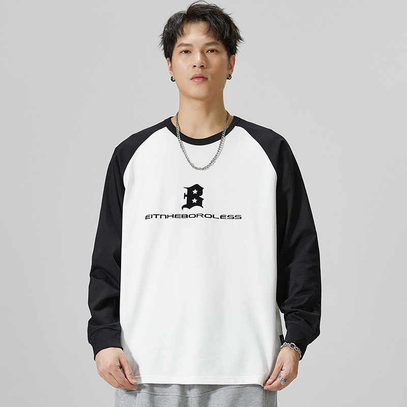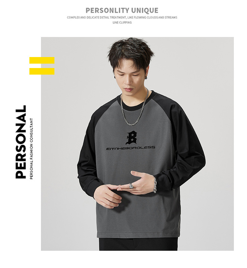 F1150 | 플러스 사이즈 남자의 가을 새로운 260g 무거운 뿔 바느질 긴 소매 티셔츠 느슨한 주름 방지 재킷 남성