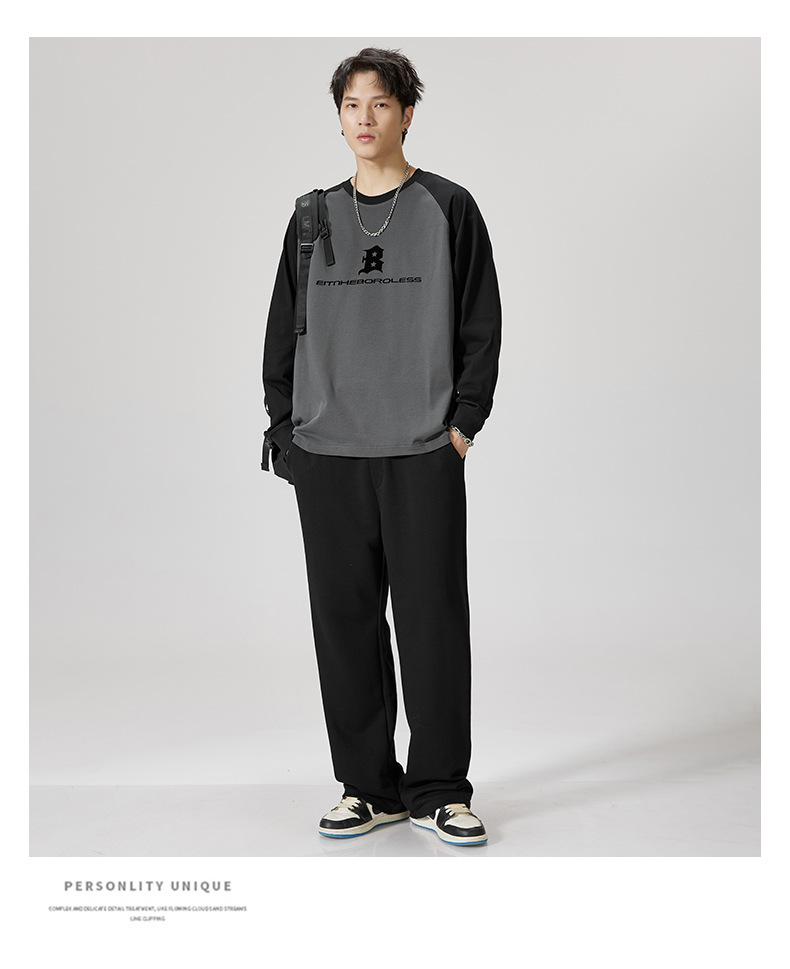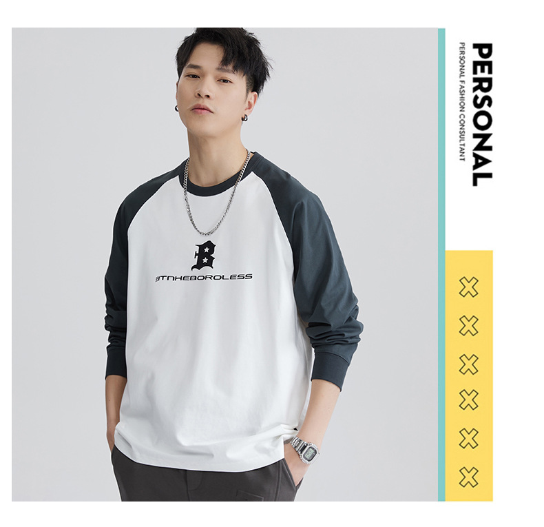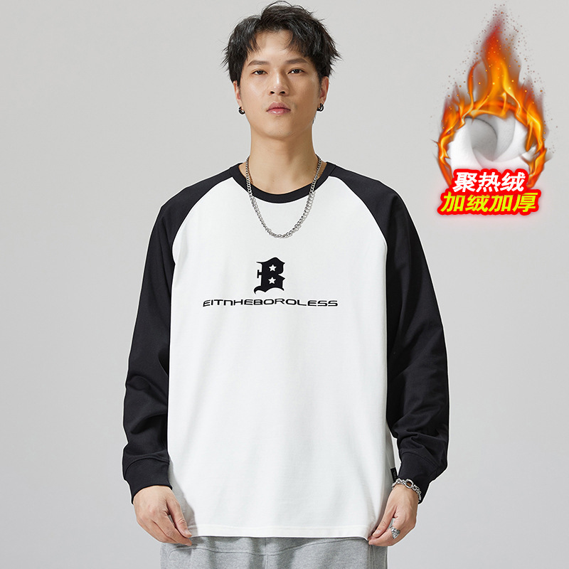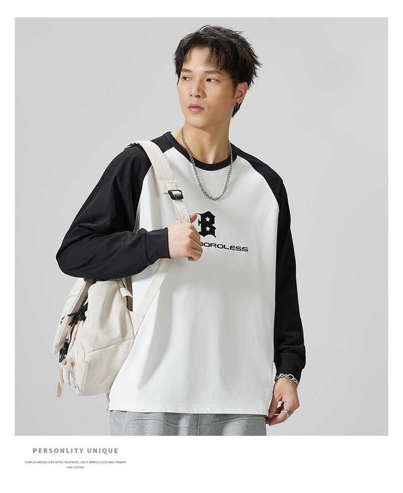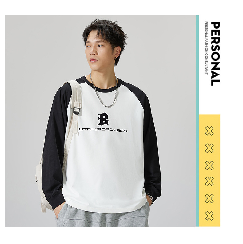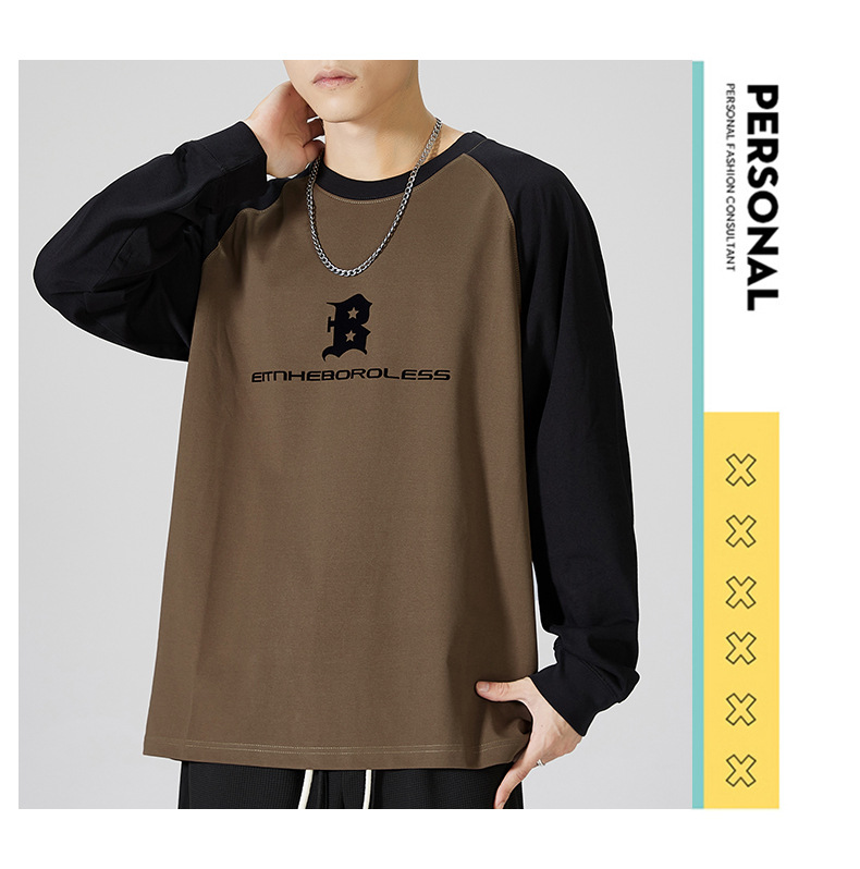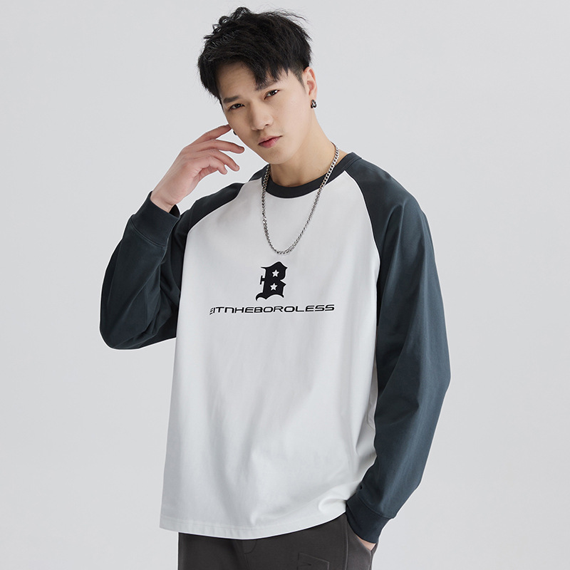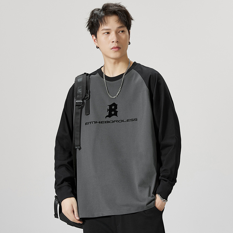 F1150 | 플러스 사이즈 남자의 가을 새로운 260g 무거운 뿔 바느질 긴 소매 티셔츠 느슨한 주름 방지 재킷 남성