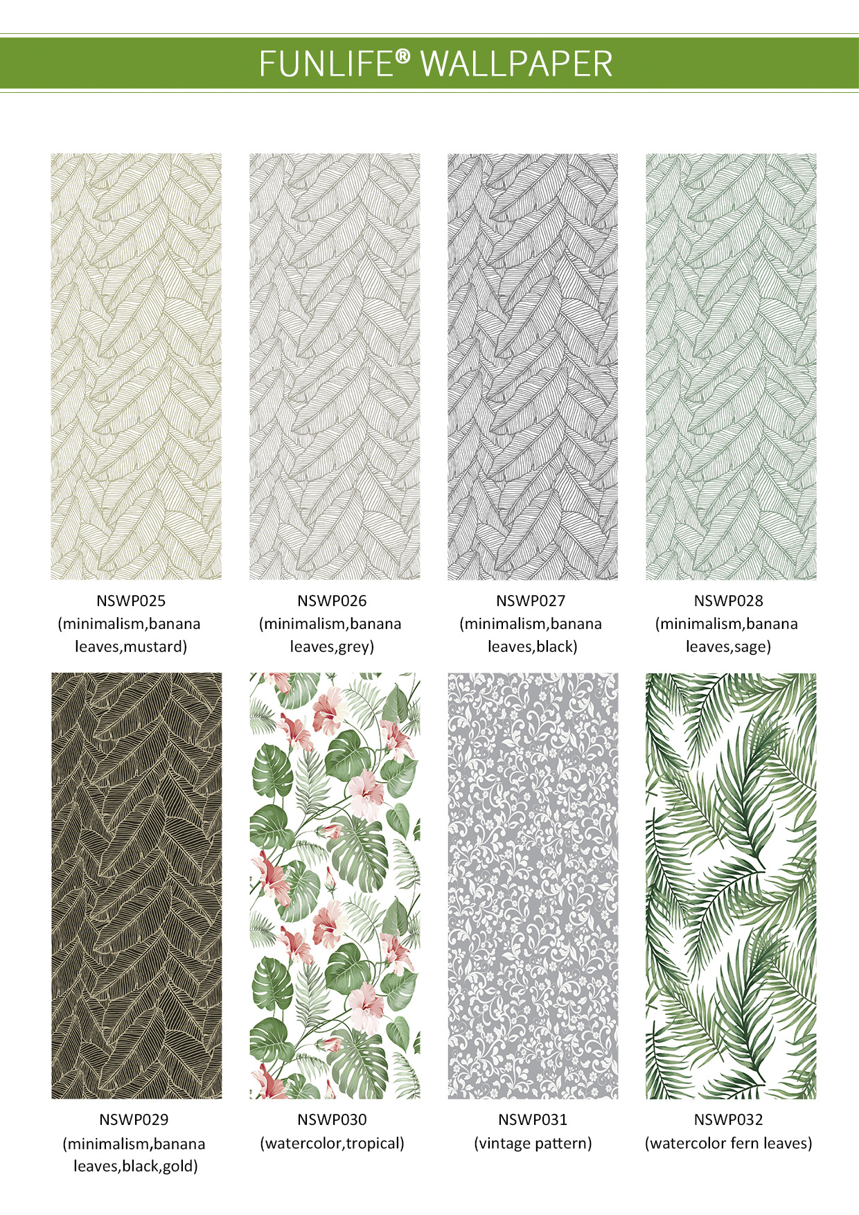 Funlife 홈 수정 DIY 원활한 접합 벽지 북유럽 식물 벽지 방수 자체 붙여 넣기 NSWP033