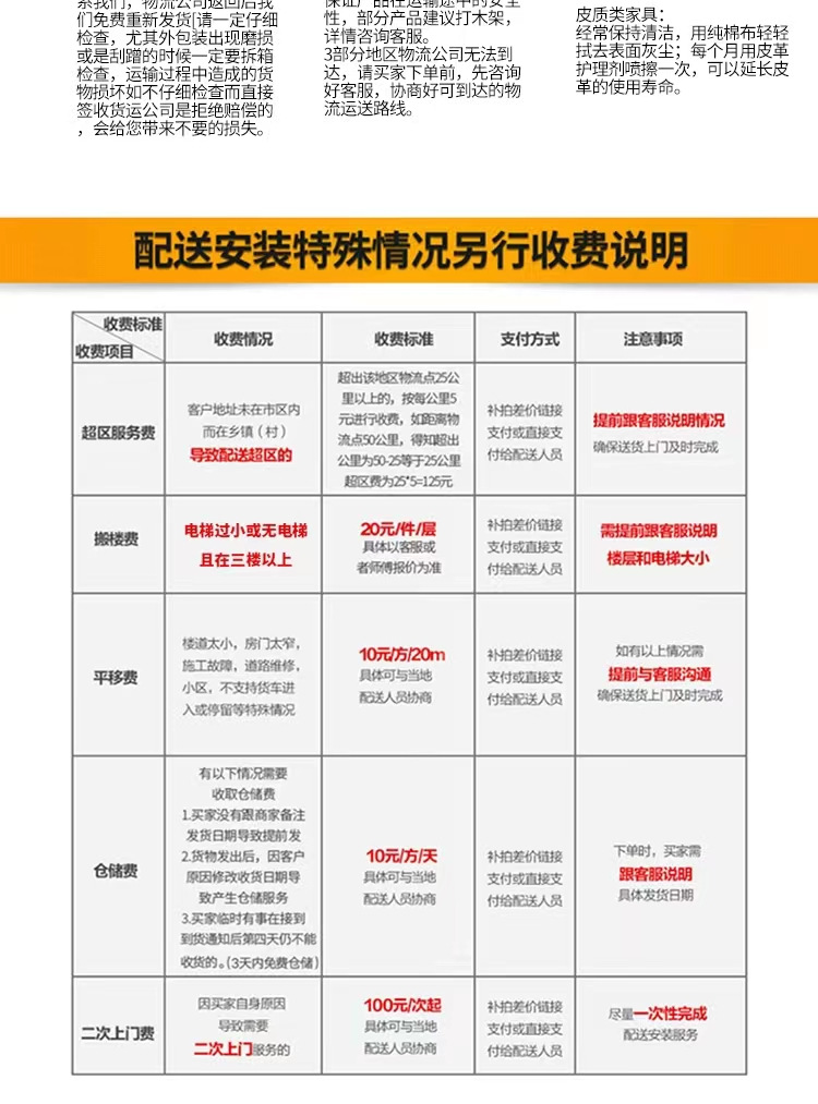 3.好服务-----金额满1200元即可在全国大部分市区县城免费免费送货和安装;不满的需要加100元配送安装费或者发顺丰速运送货到家或者楼下(超区,特殊小区或者偏远村组不送货,需要到镇自提,安装简单,我们提供安装示意图)。具体地址联系客服查询能否配送安装或者送货到楼下。(偏远地区下单请先咨询客服,谢谢)