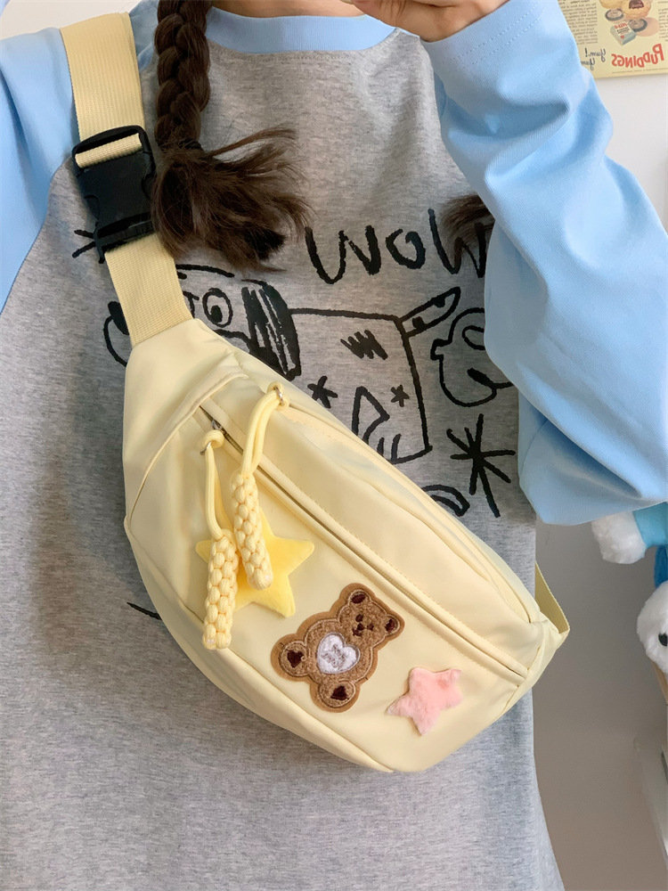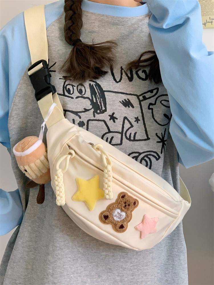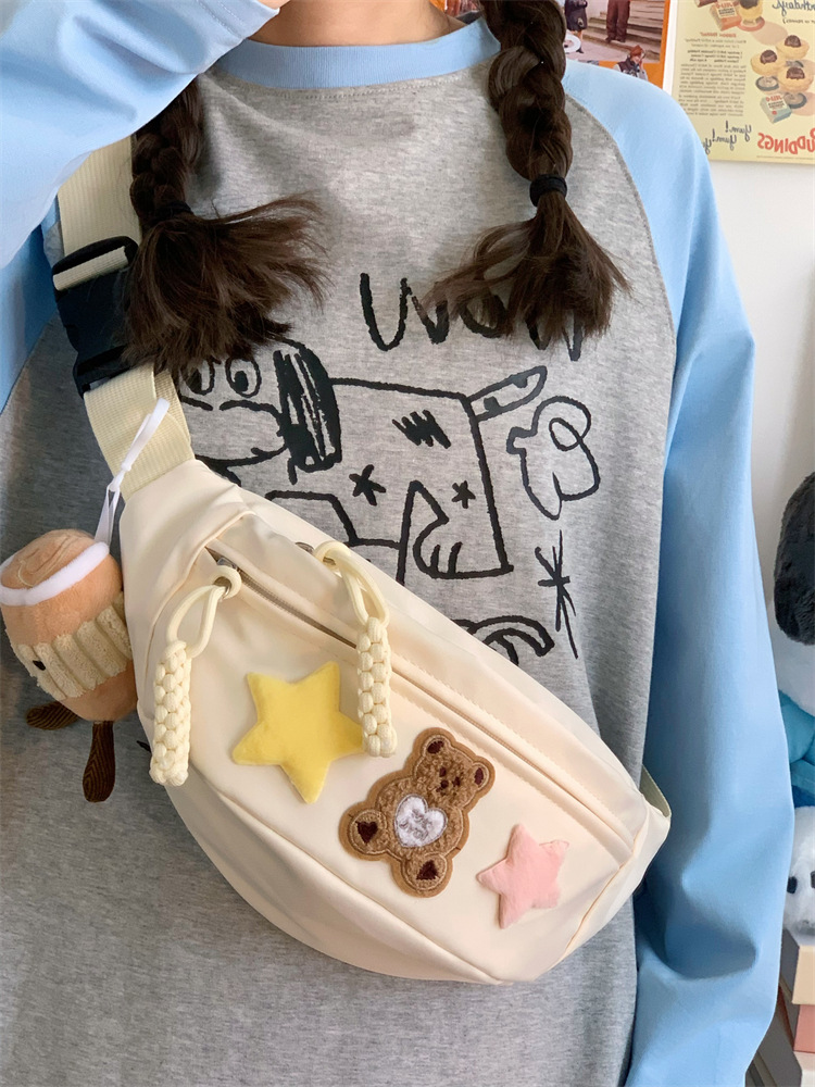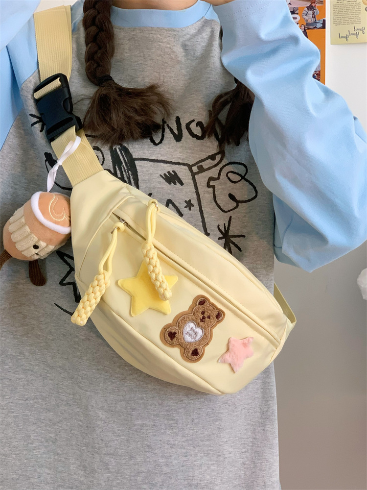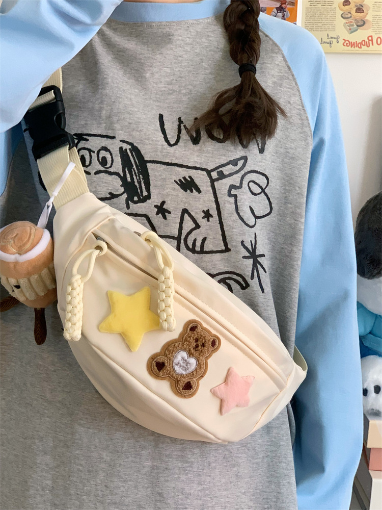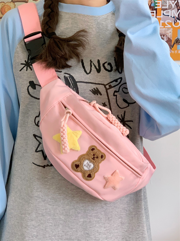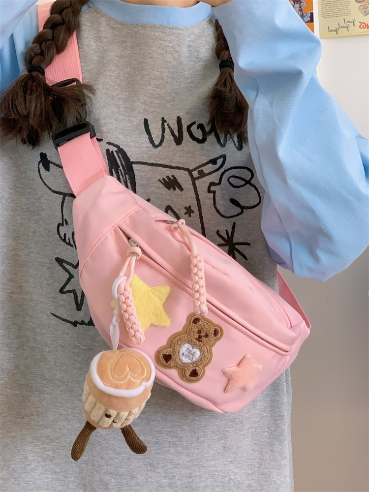 일본식 귀여운 곰 가슴 가방 2023 새로운 스타 만화 학생 크로스 바디 백 신선한 소녀 숄더 백 여성